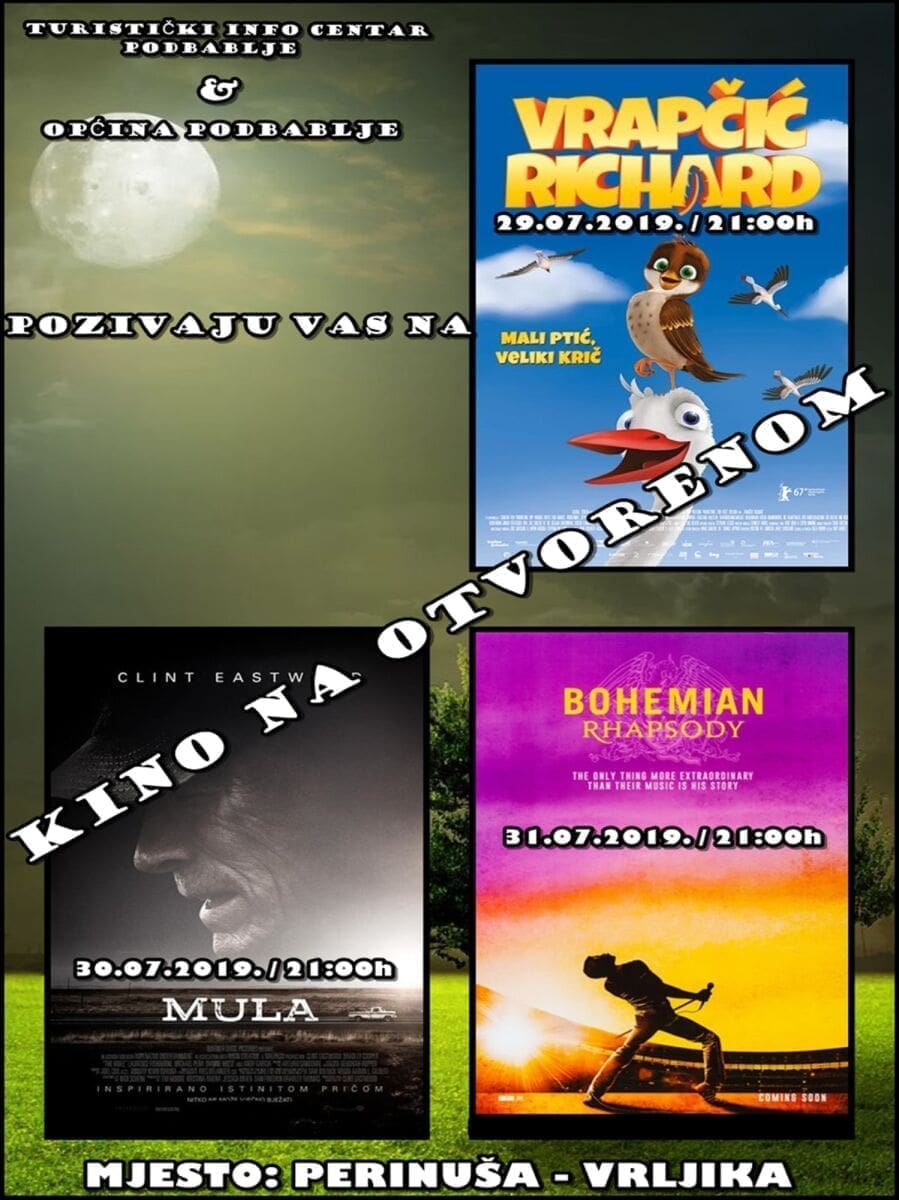 U organizaciji Općine Podbablje i Turističkog info-centra Općine Podbablje organizira se Kino na otvorenom na svima nama već poznatoj lokaciji, na Perinuši (Vrljika).