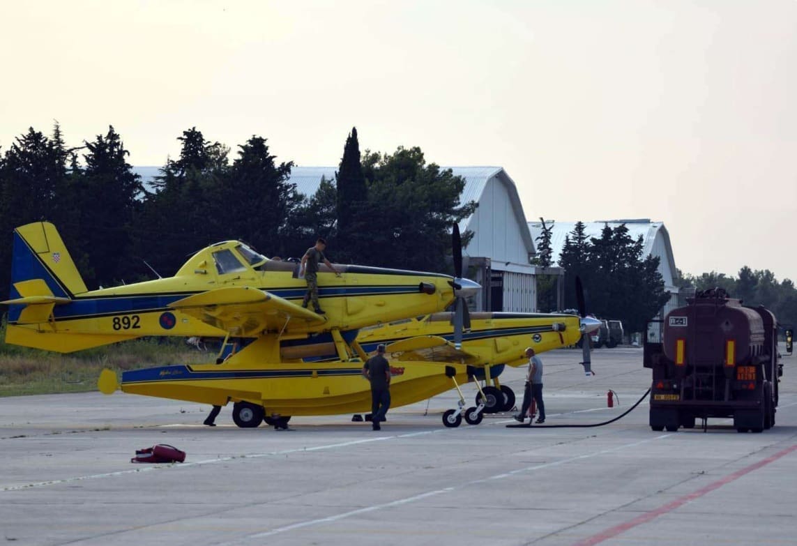 Stanje na požarištu u zaleđu Šibenika je stabilizirano te su dva aviona Canadair CL-415 iz sastava Protupožarnih namjenski organiziranih snaga Oružanih snaga RH sletjela u Zračnu luku Split na punjenje goriva, a nakon smirivanja nevremena vratit će se matičnu bazu u Zemuniku, gdje je već ranije sletio Aitractor AT-802 koji je također bio angažiran na najvećem ovogodišnjem požaru u Hrvatskoj.