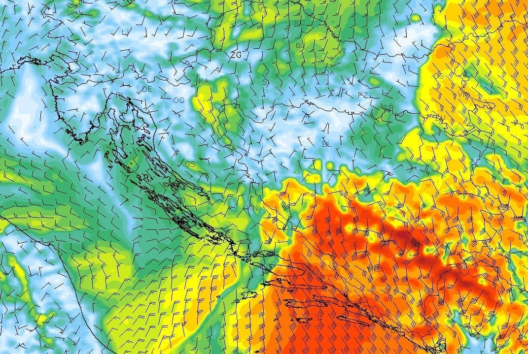 Ovaj sustav postupno se premješta prema srednjoj i južnoj Dalmaciji uz postupno jačanje. Donosi kišu, pljuskove i grmljavinu, a ponegdje i jače grmljavinsko nevrijeme.
