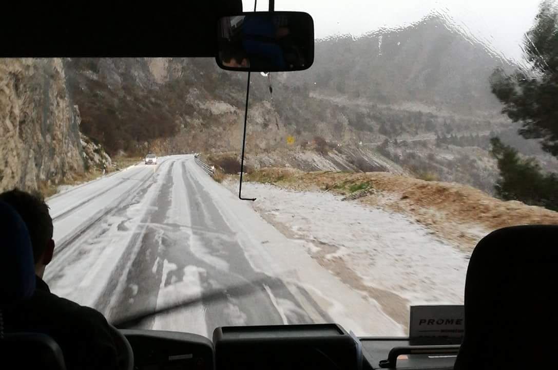 Snijeg otežava promet u Lici, Gorskom kotaru, sjevernom dijelu Hrvatskog primorja te središnjoj i sjeverozapadnoj Hrvatskoj, a po mokrim i skliskim kolnicima od kiše vozi se u Istri, Dalmaciji i dijelu Slavonije. U dijelu Gorskog kotara i Like pada ledena kiša, a u dijelu Dalmacije mjestimice pada tuča. U većem dijelu unutrašnjosti kolnici su vlažni i skliski. Zbog niskih temperatura moguća je poledica, posebice na mostovima i nadvožnjacima.