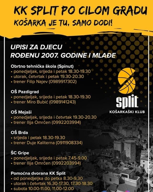 Iz KK Split su izvijestili da su upisi za djecu u tijeku.