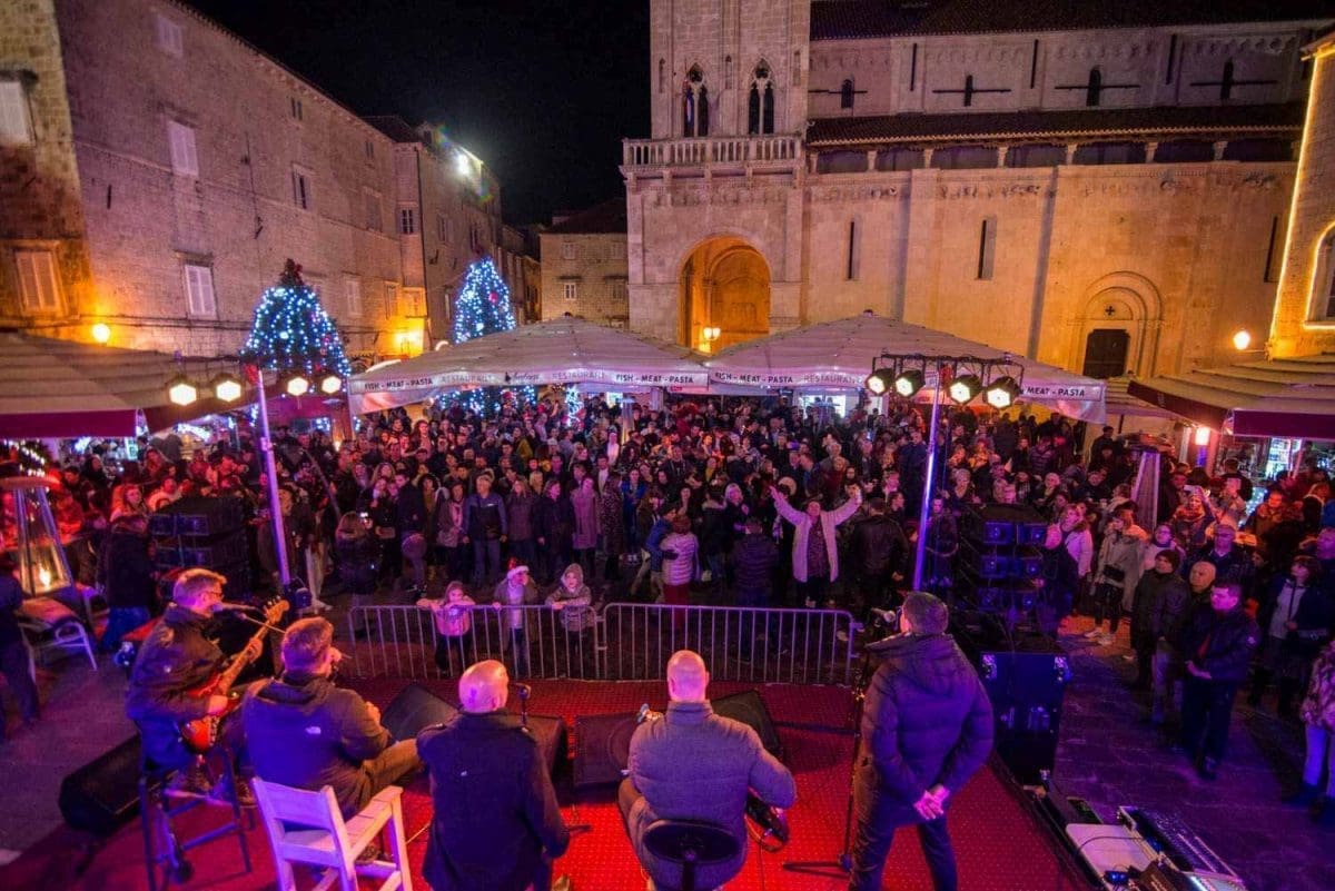 Klapa Iskon i Marko Pecotić u nedjelju su pjesmom ugrijali Trogirane nastupivši u okviru Trogirske Adventure. Trg Ivana Pavla II bio je prepun, unatoč hladnoći.