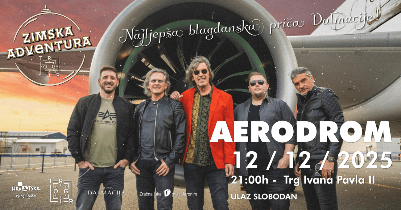 U petak, 12. prosinca, publiku očekuje rock poslastica na glavnom gradskom trgu – koncert kultne grupe Aerodrom u 21:00 sat. Prije njih će atmosferu zagrijati DJ Toni Tox, već od 20:00 sati.