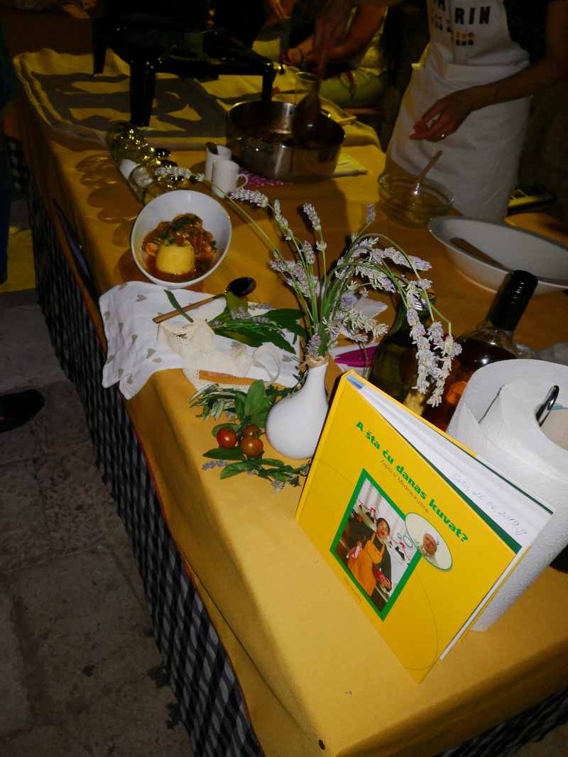 Kad je krenuo drugi dio večeri, pripremile su članice Tamarina svoju ribicu, namirnice, kuhače, lonac, domaće bilo vino i maslinovo ulje... uredile su svoj stol, ukrasile ga biljem našeg podneblja (lavandom, maslinom i lovorom) i krenule uz pjesmu pripremati jelo kojemu su dale ime ˝Bilo jednom u staroj Saloni...˝ (brudet o' solinske pastrve s palentom) gdje su kuhajući istovremeno i pričale priču o našoj endemi i simbolini Grada Solina, koja je od cijeloga Svijeta izabarala živjeti baš u našoj rijeci Jadro.