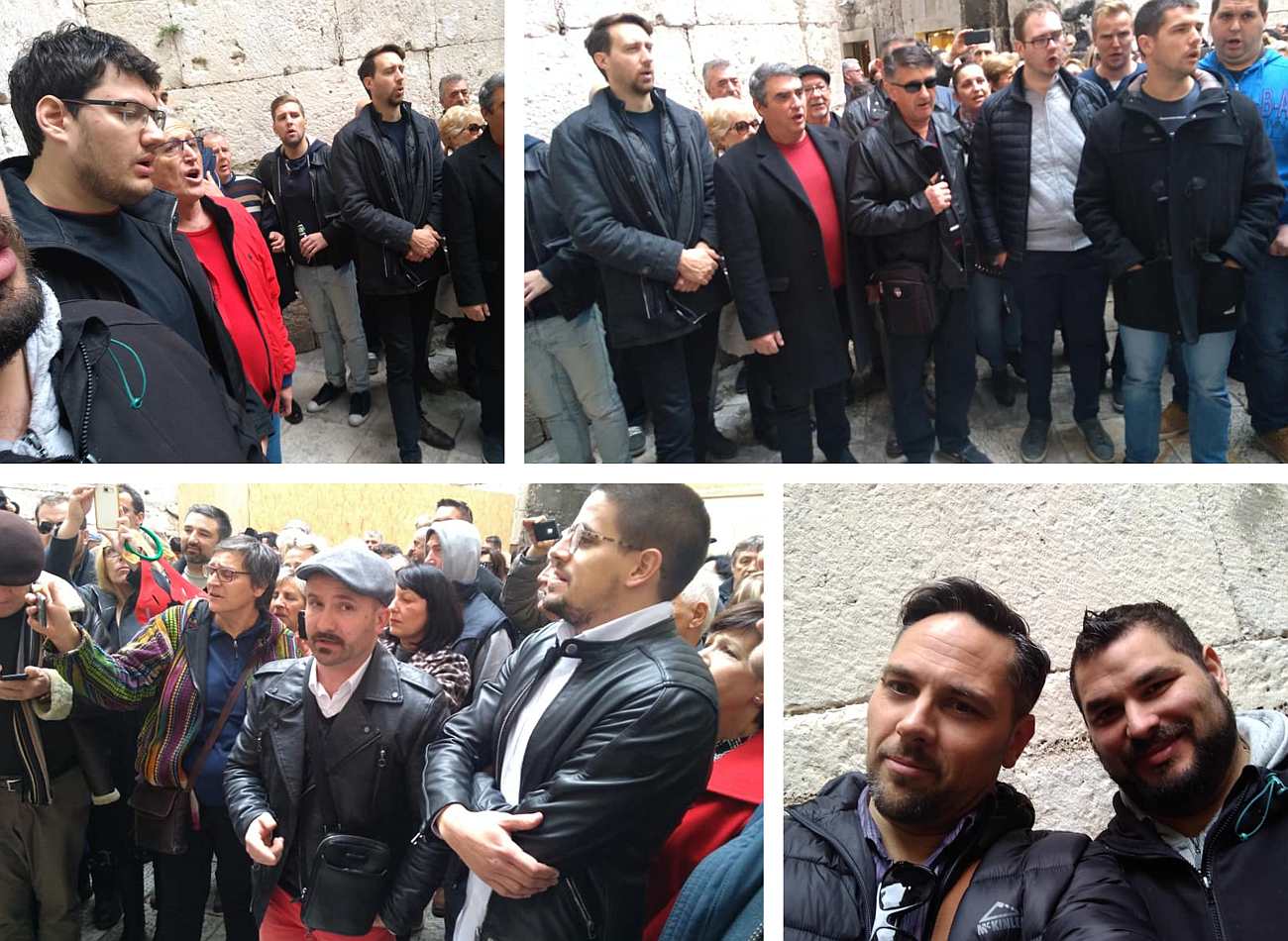 A kad se progurate kroz gužvu do tamo, zaista imate u čemu uživati. I nema tko ne zastane poslušati barem jednu-dvije pjesme, snimiti koji kadar jer je zaista sve posebno, od ambijenta do melodije… Od izvornik klapskih, preko božićnih pjesama, pa do “U boj, u boj” – svega je bilo na klapsko repertoaru Ispod ure.