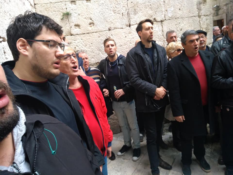 Oblačno vrijeme nije smelo nekoliko desetaka klapskih pjevača i ove godine zapjevaju "U poju se mala", "Dobro jutro" i mnoge druge klapske pisme. Pisma se orila srcem Splita od 12 do 13:30.