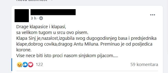 Neslužbeno doznajemo da je u bolnici boravio desetak dana, a zdravstveno stanje mu se posljednjih dana dodatno pogoršalo. Bio je pozitivan na koronavirus.