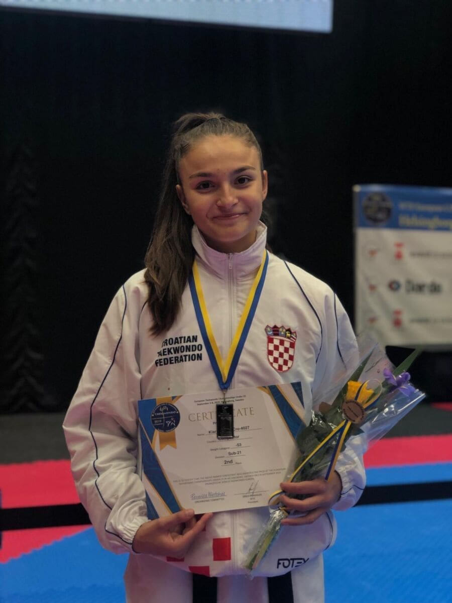 Drugog dana europskog taekwondo prvenstva za mlađe seniore koje se održava u Švedskoj Hrvatska je stigla do drugog odličja. Srebrna je još jedna članica splitskog Marjana, Klara Kovač koja je u kategoriji do 53 kilograma upisala četiri pobjede da bi je u finalu zaustavila Ruskinja Mironyuk.