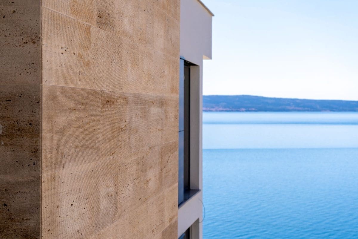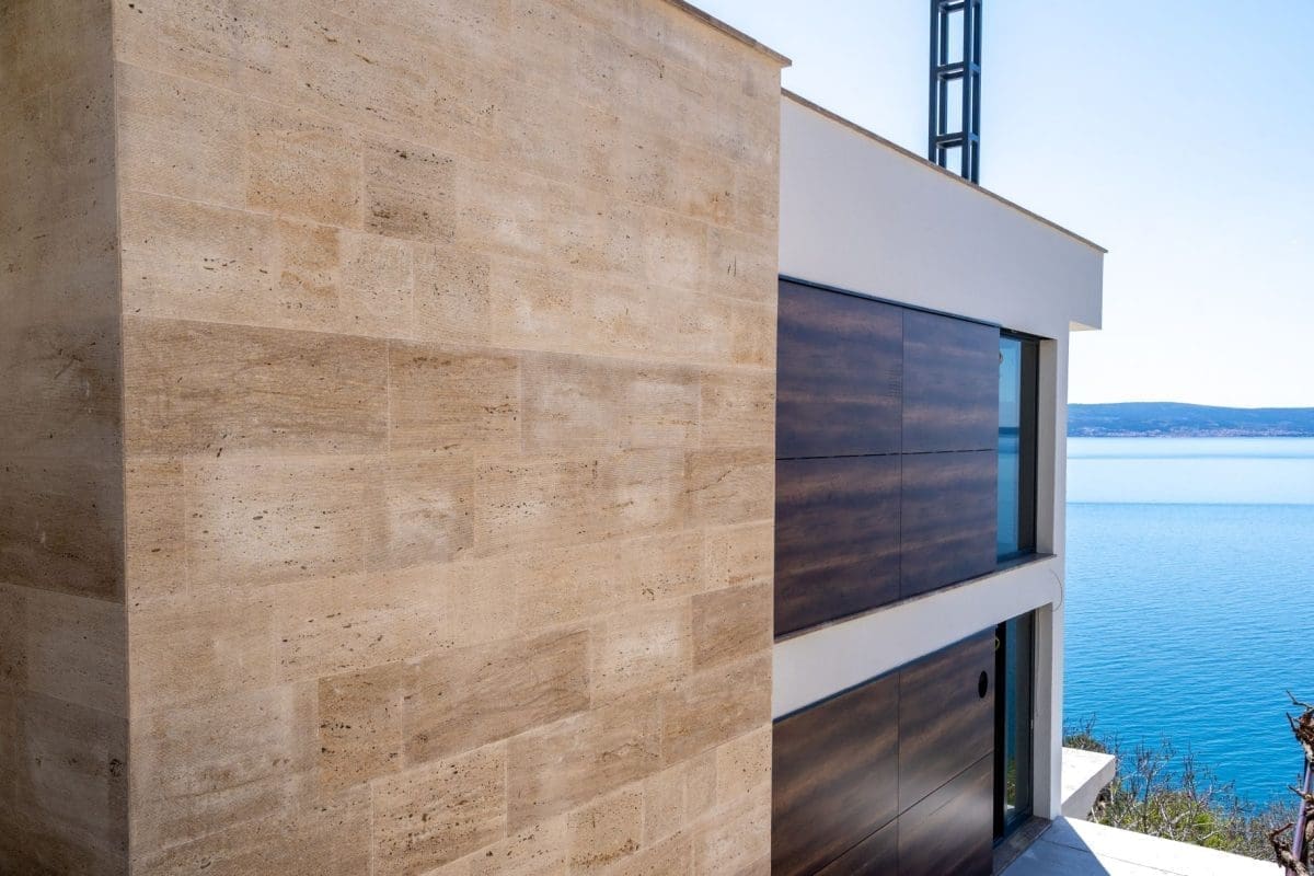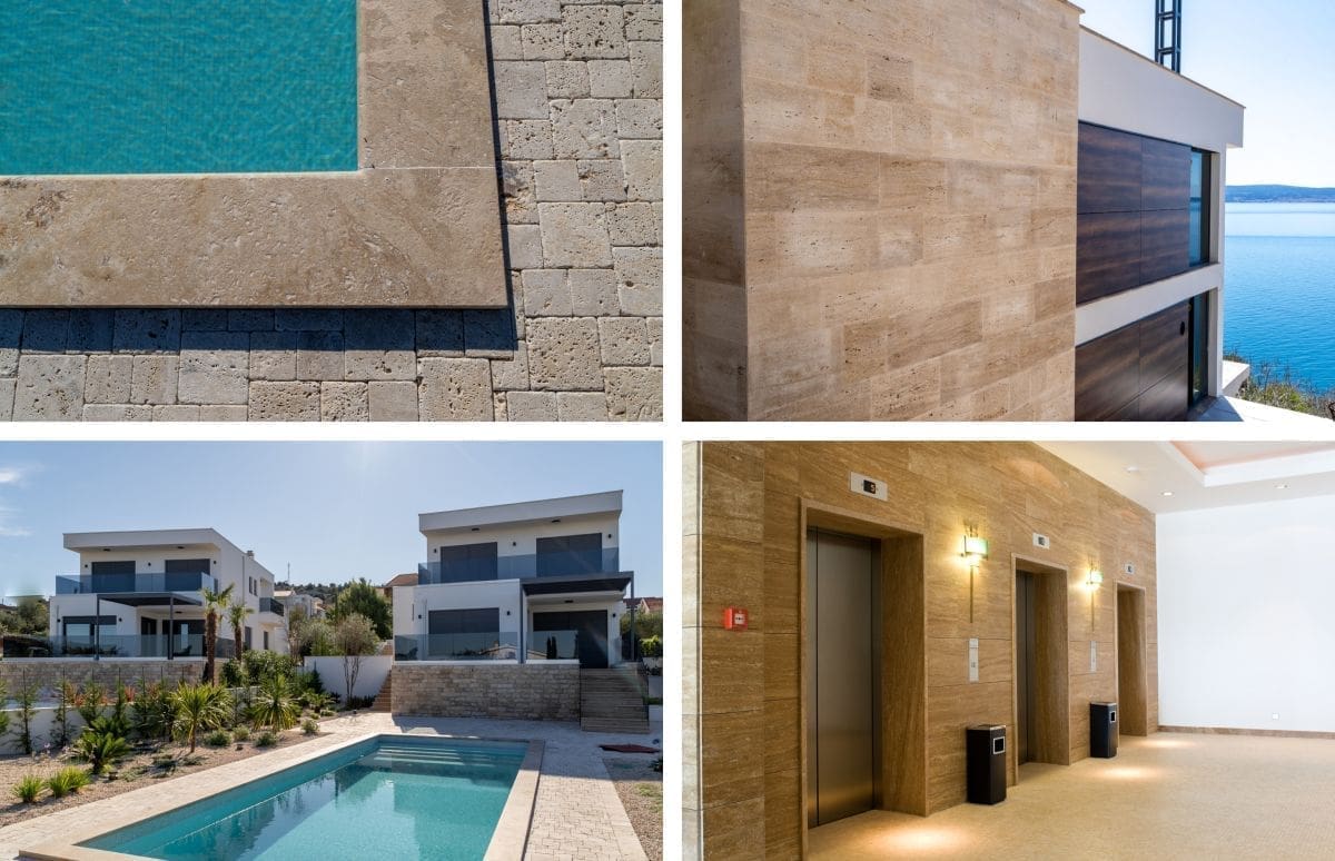 Travertin je ukrasni, prirodni kamen, kombinacija vapnenca i mramora koja je specifična zbog svog rupičastog izgleda. Upravo zbog te hrapavosti i jer nije sklizak, ovaj kamen izvrstan je odabir za eksterijer. S obzirom da je otporan na temperaturne razlike, ne blijedi na suncu i trpi sve vremenske uvjete, odličan je izbor za vanjske podove, terase, stepeništa ili obloge oko bazena, a može trajati desetljećima!