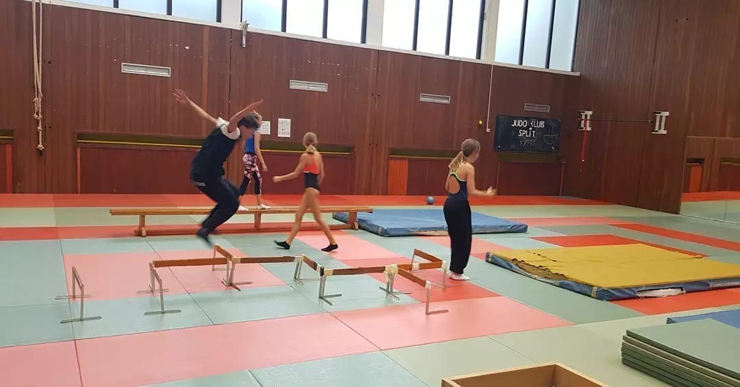 Trening se sastoji od suhog treninga, treninga u bazenu i treninga na trapulinu.