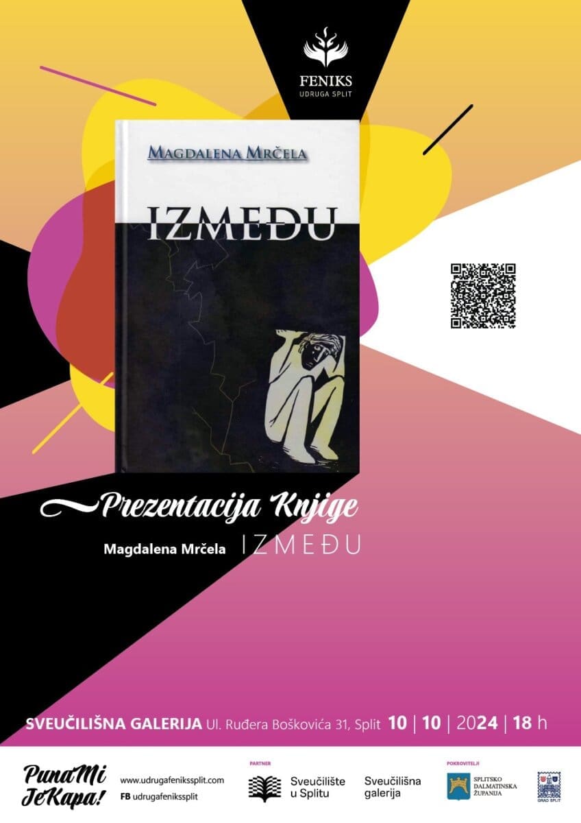 Udruga Feniks Split koja se bavi očuvanjem mentalnog zdravlja kroz svoj projekt „Puna mi je kapa!“ priprema književni susret s nagrađivanom splitskom autoricom Magdalenom Mrčela. U Sveučilišnoj galeriji (Ulica Ruđera Boškovića 31) u četvrtak 10. listopada u 18 sati održat će se predstavljanje hvaljenog romana „Između“ koji se bavi problematikom mentalnog zdravlja i suicida.