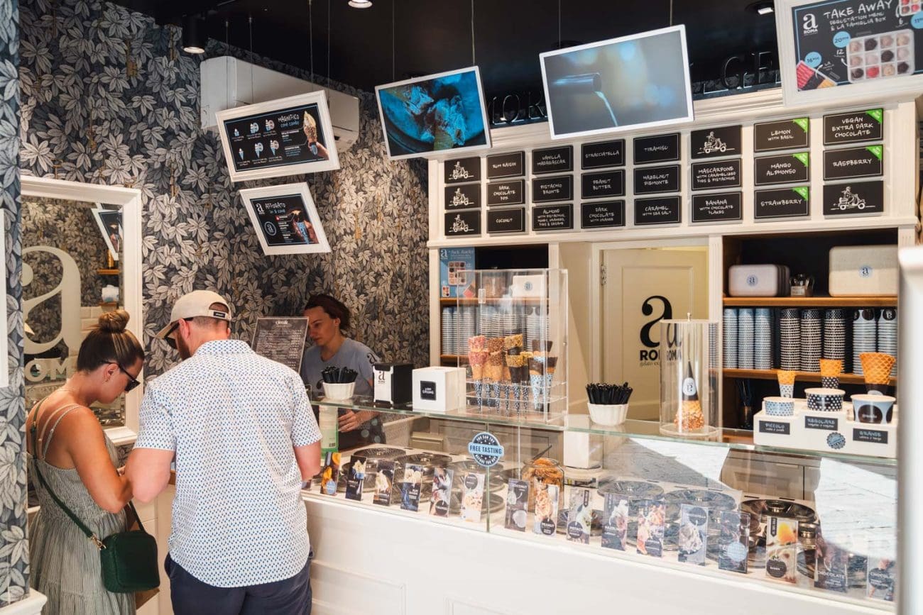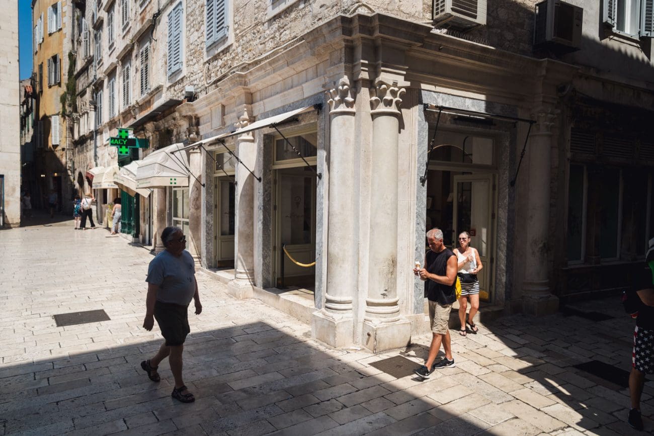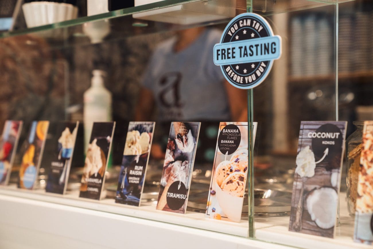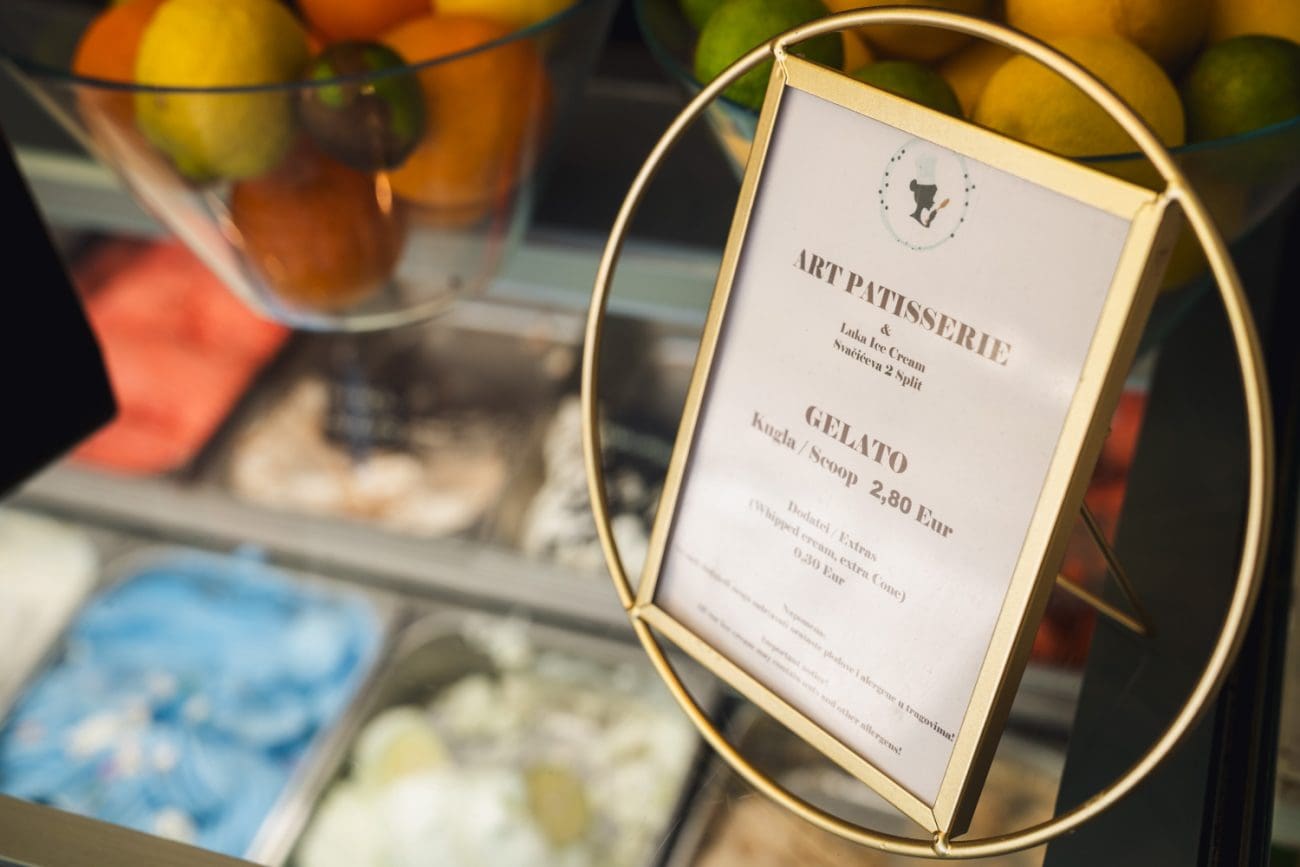 Posjetili smo i Aroma Gelato Experience, lanac koji u Splitu ima nekoliko poslovnica i često privlači gužve čak i u rano prijepodne. Cijena kuglice ovdje je 3,50 eura, no to očito ne odvraća brojne posjetitelje koji se iznova vraćaju zbog kvalitete. Naime, njihov gelato proizvodi se tradicionalnim, prirodnim procesom bez umjetnih aroma, aditiva i glutena, a u ponudi imaju i nekoliko veganskih okusa.