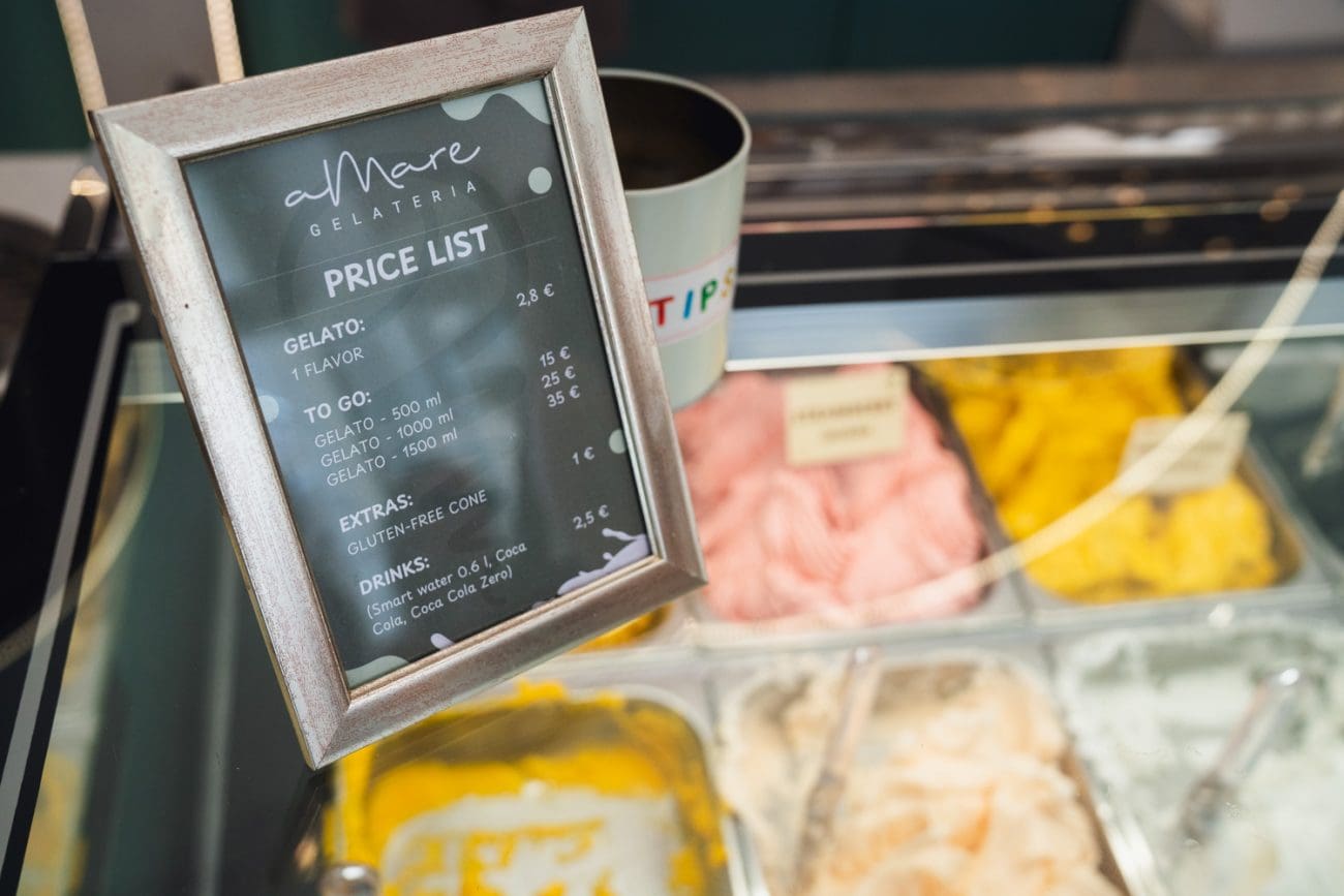 U centru grada prosječna cijena jedne kuglice kreće se između 2,80 i 3 eura, dok u nekim gelaterijama za “premium” okuse poput pistacije, oraha ili mango-mascarponea treba izdvojiti i 3,50 eura. U ekstremnim slučajevima, poput tzv. „golden sladoleda“ s egzotičnim sastojcima, cijena doseže čak 5 eura po kuglici.