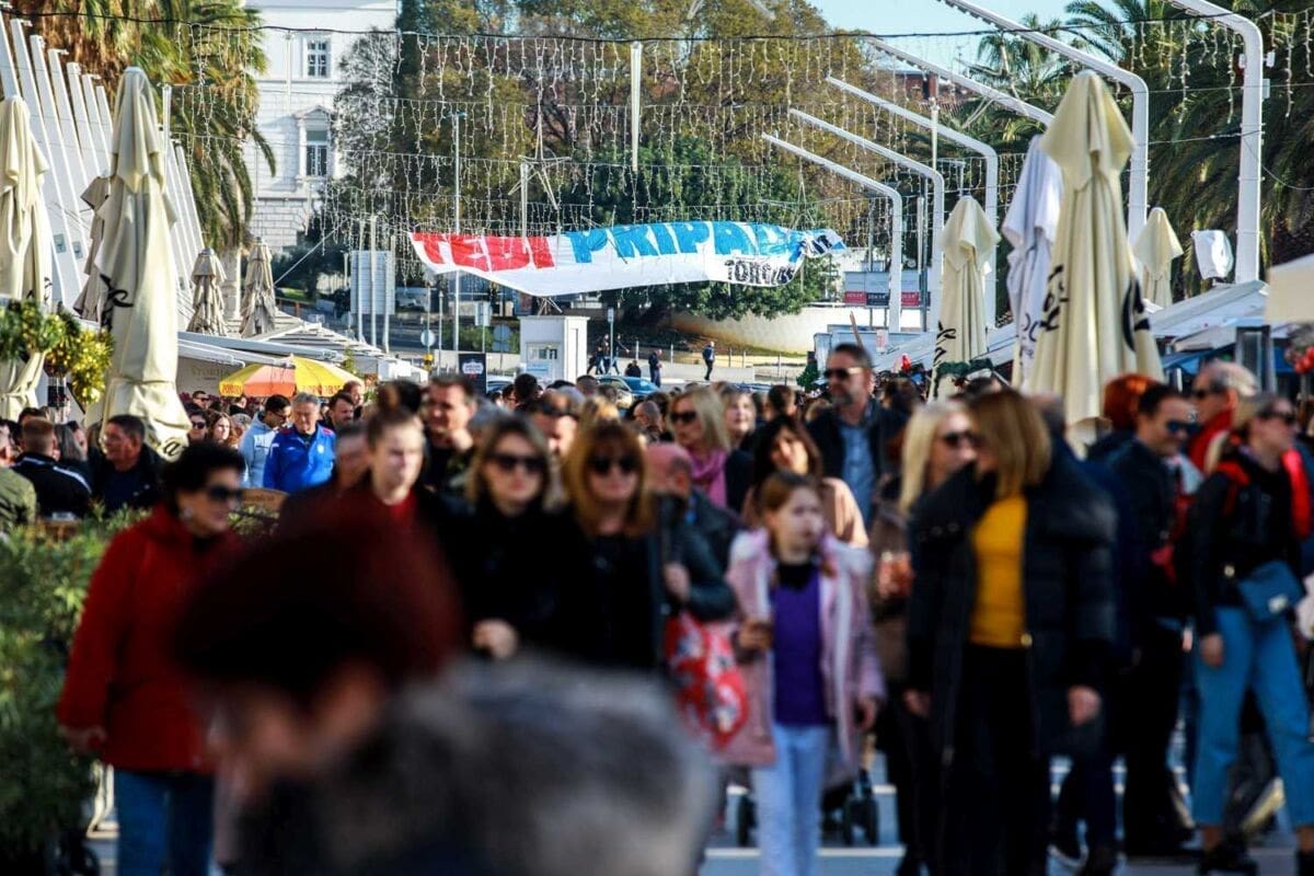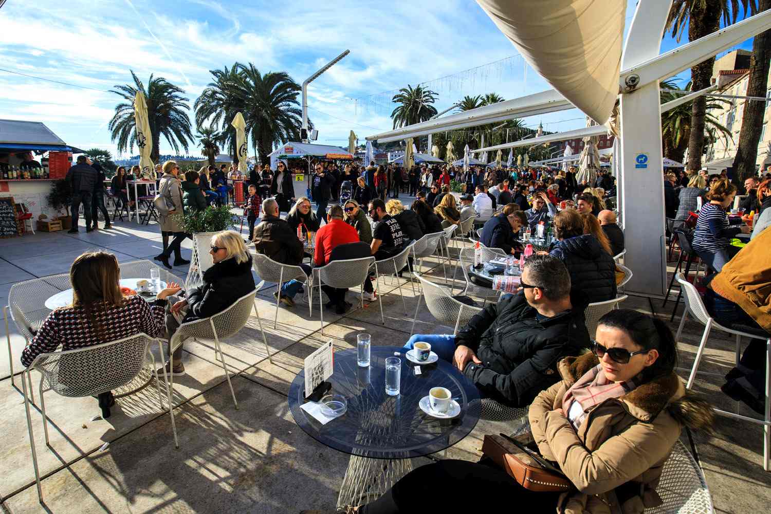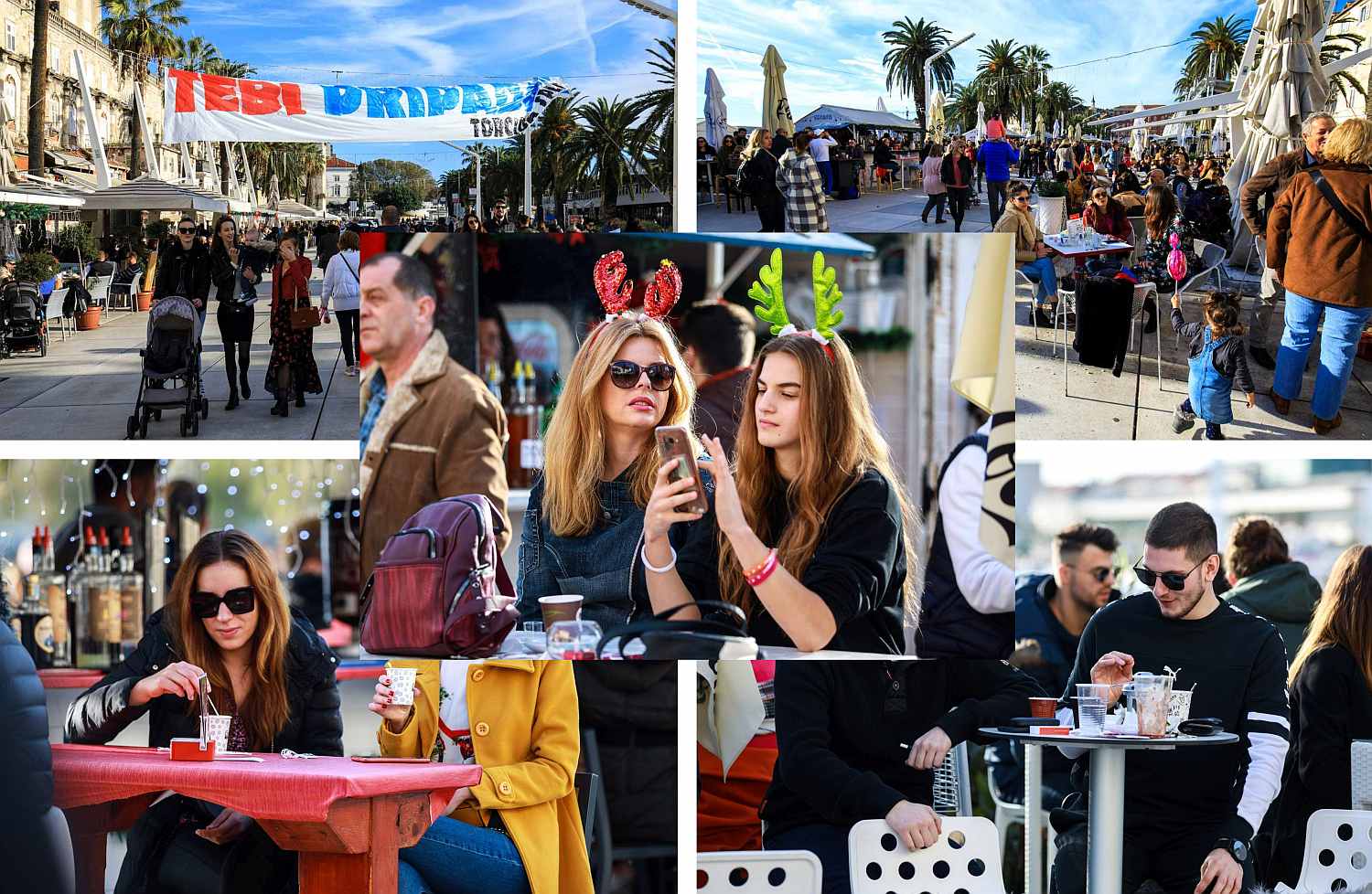 Još samo prije dva dana splitskom Rivom su se prelijevali valovi olujnog juga, a onda se vrijeme smilovalo u dane vikenda. Pri tome je osobito ugodno bilo tijekom nedjelje u kojoj su najviše dnevne temperature, potpuno atipično za sredinu prosinca, dosezale čak 17 Celzijevih stupnjeva.