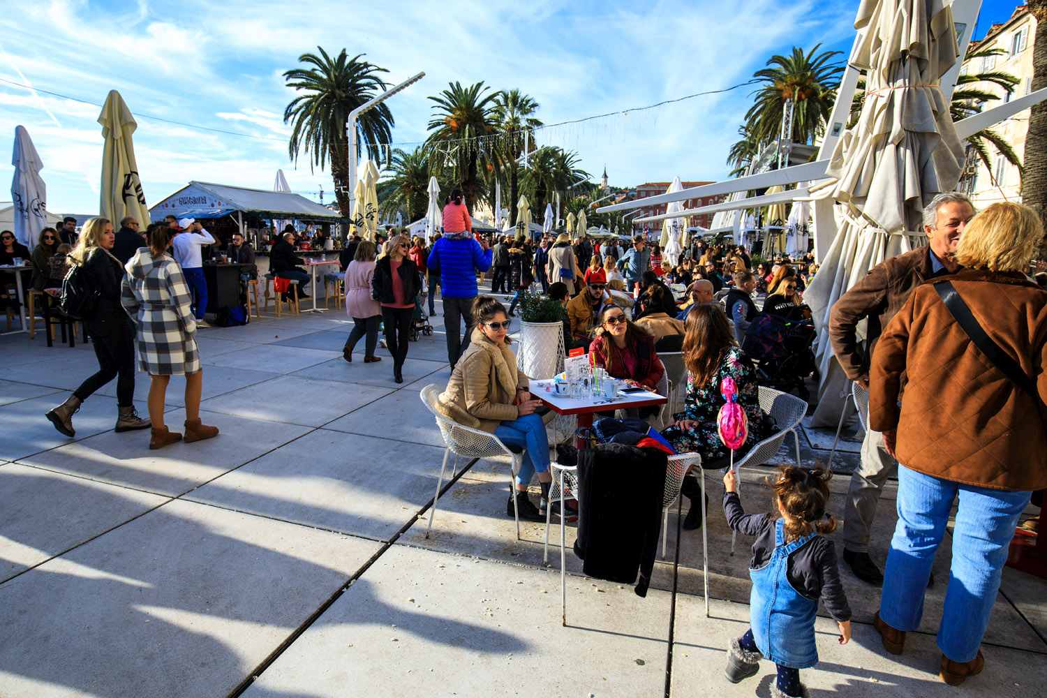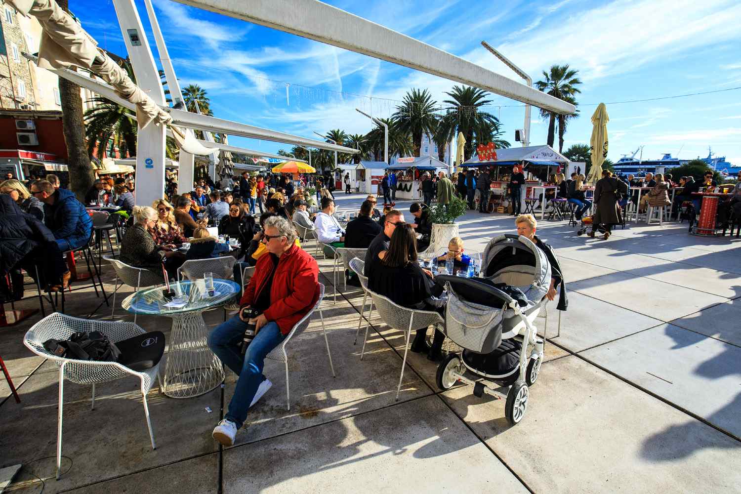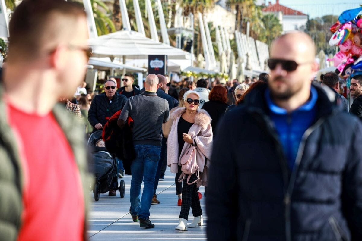 Još samo prije dva dana splitskom Rivom su se prelijevali valovi olujnog juga, a onda se vrijeme smilovalo u dane vikenda. Pri tome je osobito ugodno bilo tijekom nedjelje u kojoj su najviše dnevne temperature, potpuno atipično za sredinu prosinca, dosezale čak 17 Celzijevih stupnjeva.