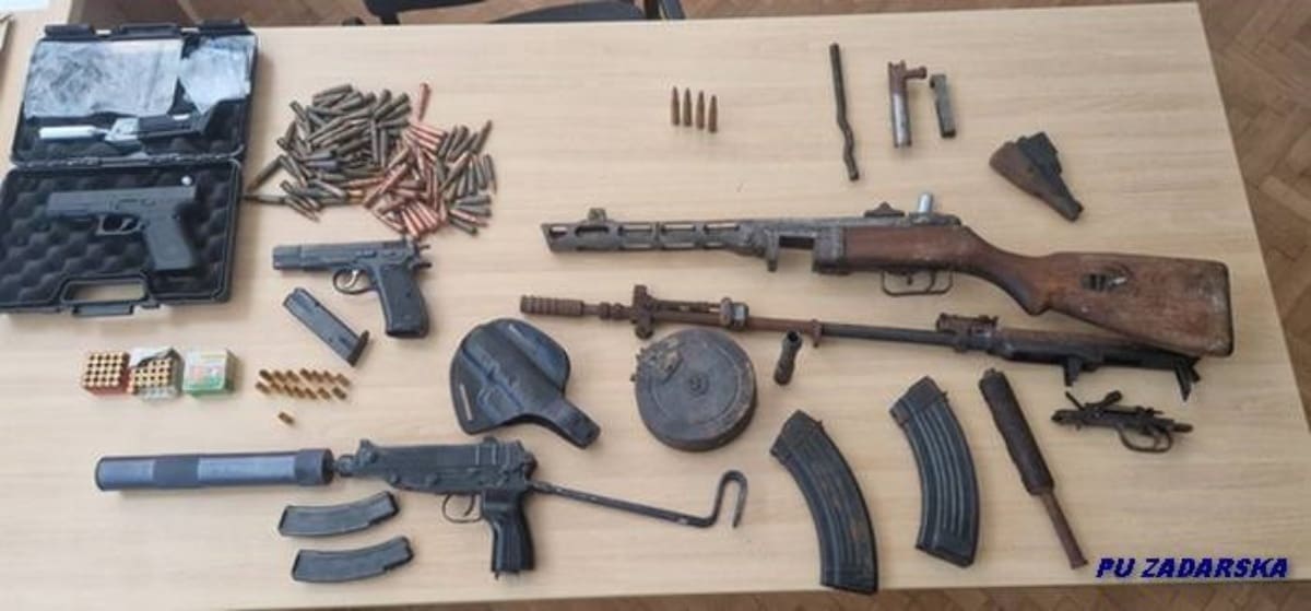 Tijekom kriminalističkog istraživanja, temeljem naredbe nadležnog suda, jučer je na biogradskom području provedena pretraga doma i drugih prostorija koje koristi osumnjičenik kojom prilikom su policijski službenici pronašli i oduzeli dvije automatske puške s pet pripadajućih spremnika, dijelove vojne puške sa spremnikom i tromblonskim nastavkom, prigušivač, pištolj s pripadajućim spremnikom, plinski pištolj s pripadajućim punjenjem te 199 komada raznog streljiva.