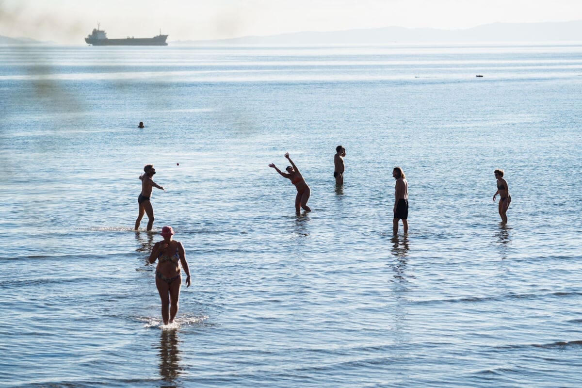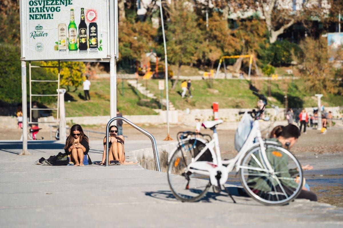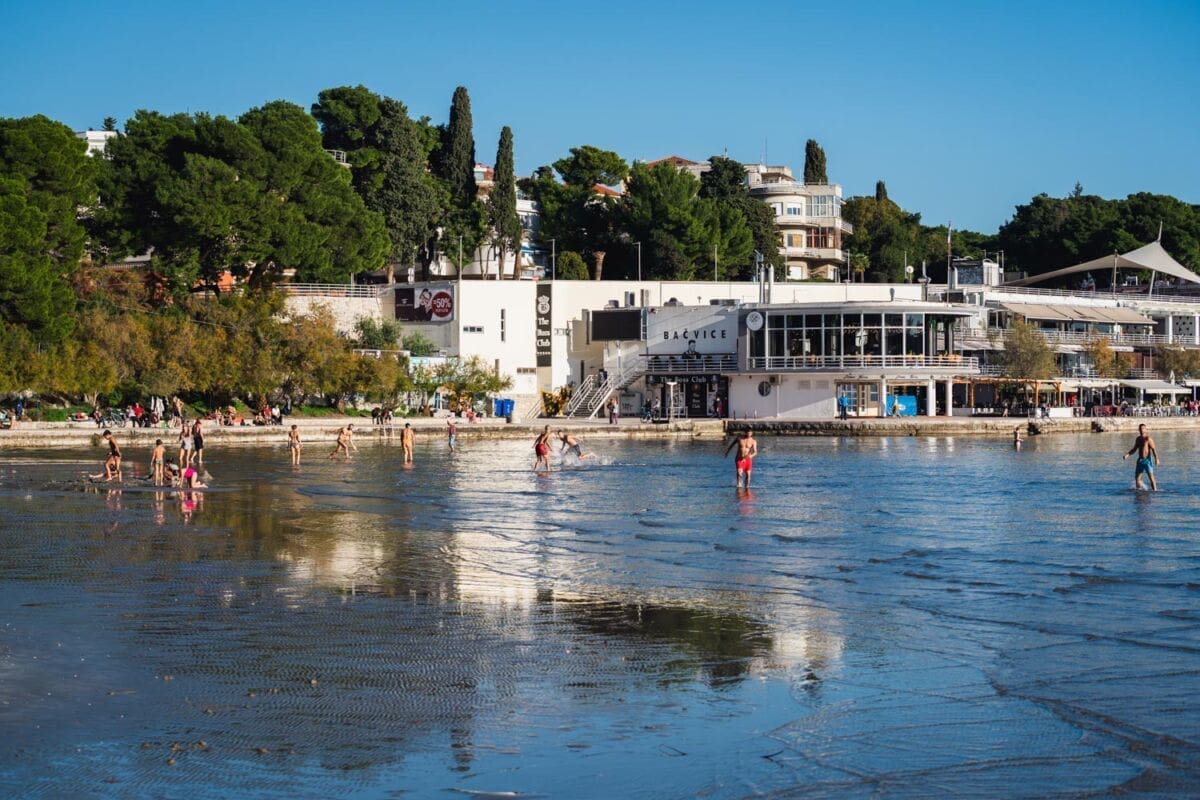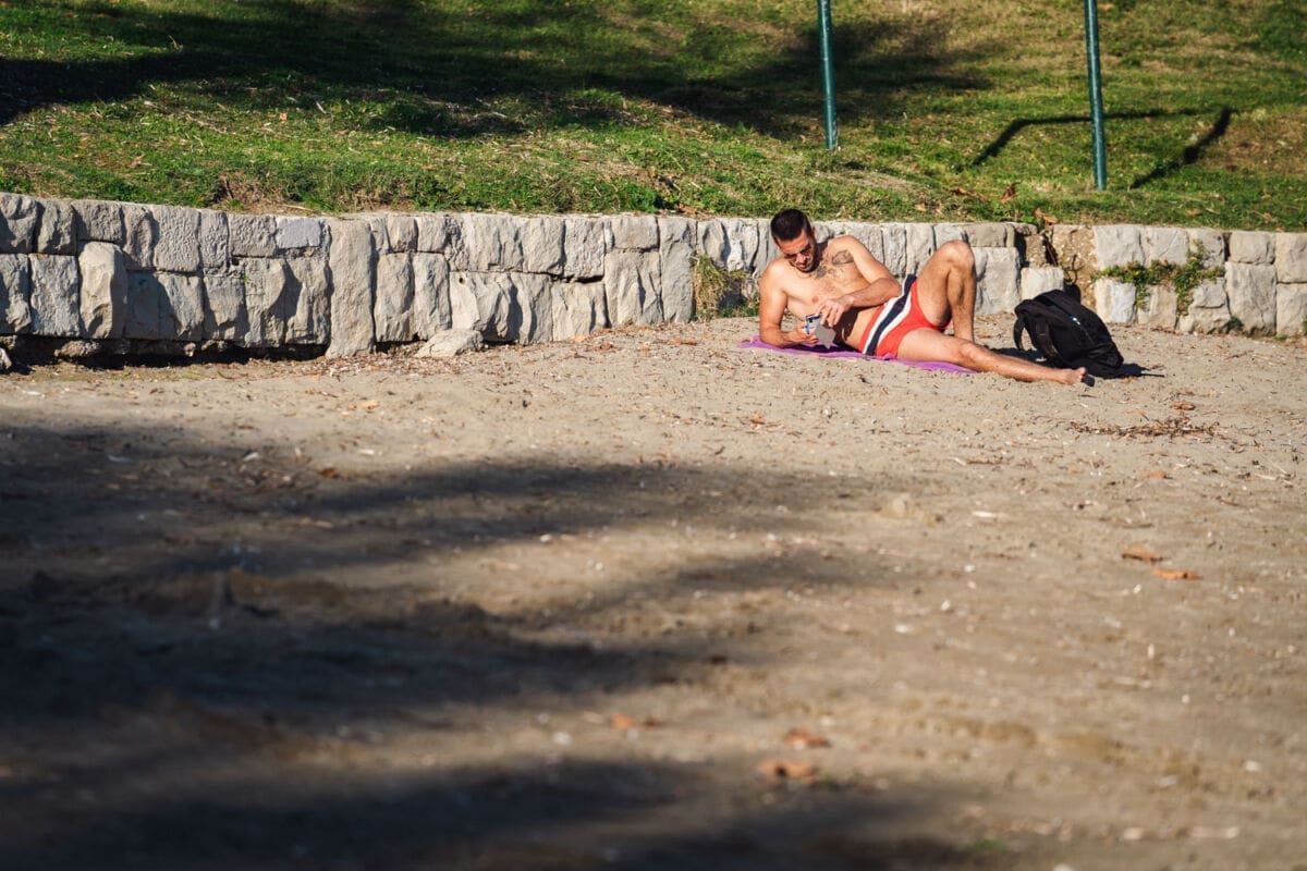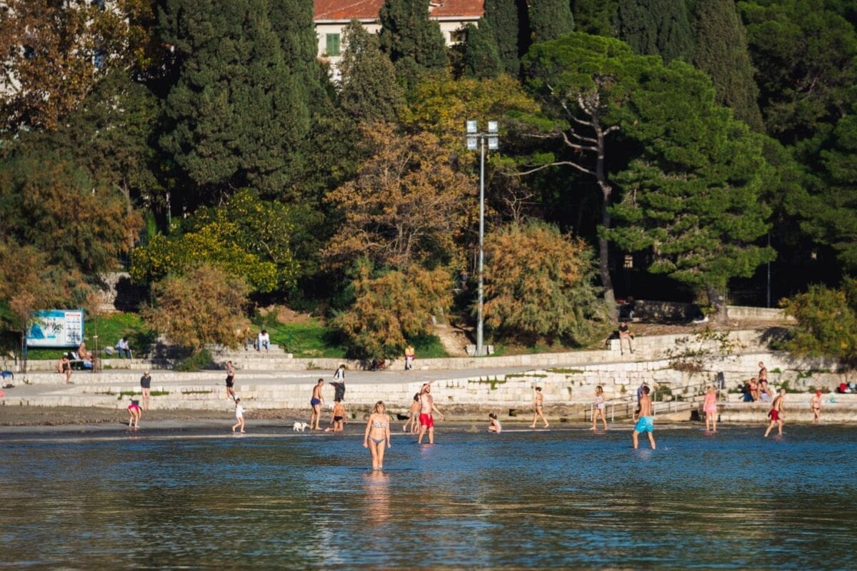 Brojni Splićani iskoristili su sunčani četvrtak i boravili uz more, a plaža na Bačvicama bila je popunjena vjerojatno kao nikada do sada na današnji datum. Ljudi su se sunčali, igrali picigin, kupali.