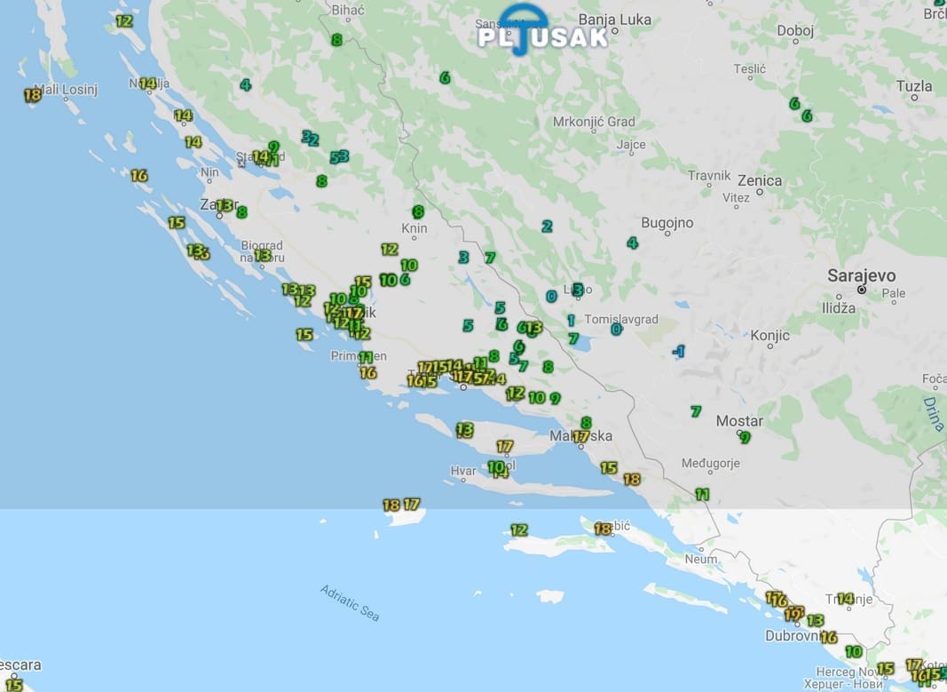 Subotu su u Dalmaciji obilježile velike temperaturne amplitude, odnosno razlika minimalne jutarnje i najviše dnevne temperature zraka.