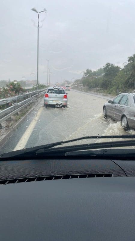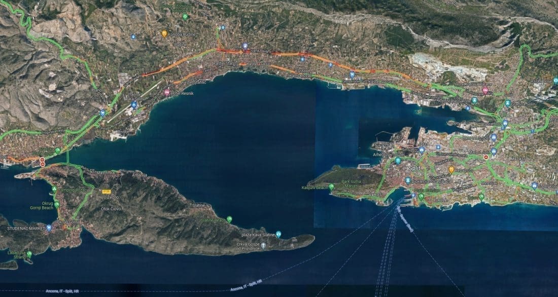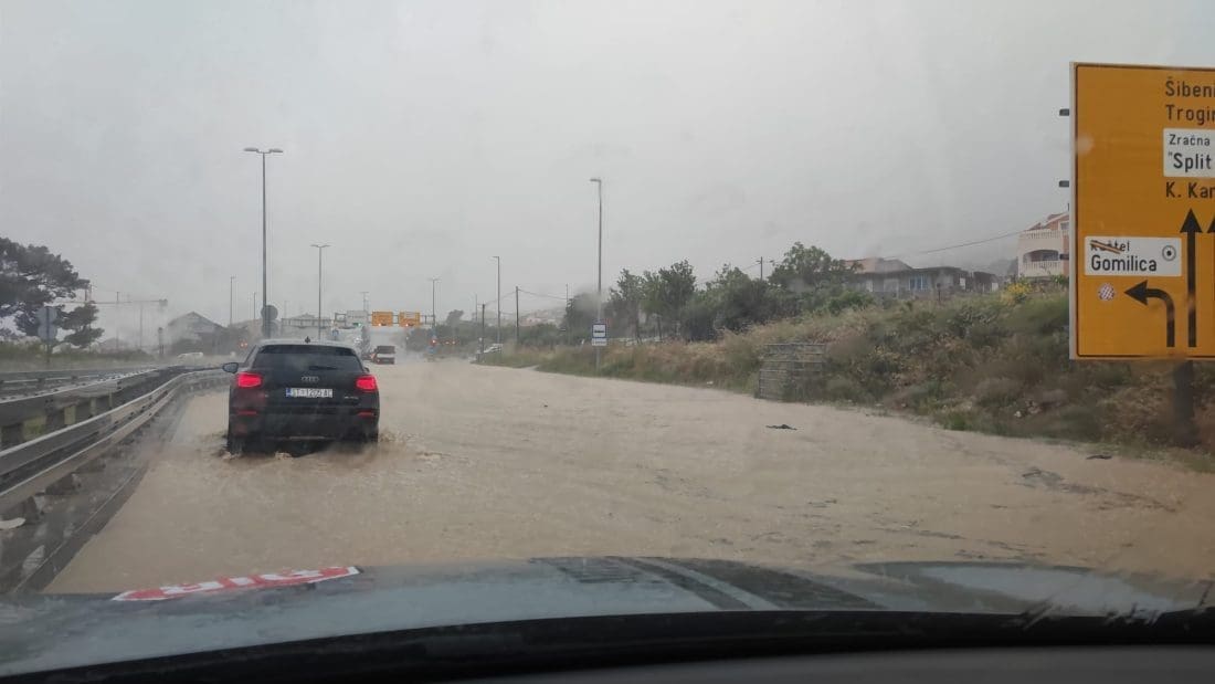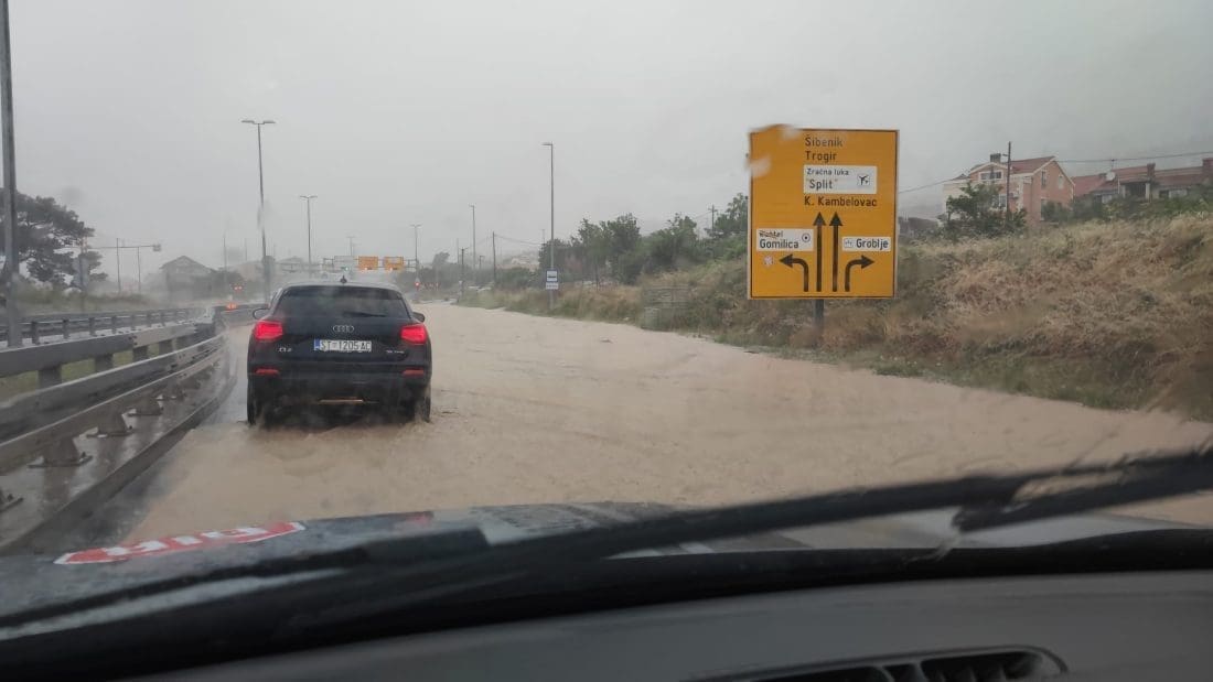 Mjesečni oborinski prosjek za svibanj je oko 65 litara! Ogromna količina oborine u kratko vrijeme uz poplave izazvala je kolaps na kaštelanskim prometnicama. Na nekim dijelovima magistrale i brze ceste voda je visoka preko pola metra. Auta se kreću sporo, a neka su i zastala u bujičnim vodama.