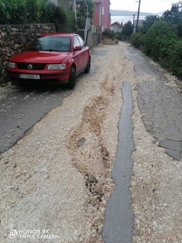 U Ulici put Kruševika u Kaštel Kambelovcu bujične vode oštetile su tamošnji kolnik i nanijele ogromne količine blata i šljunka. Trenutno se automobilom ne može proći.