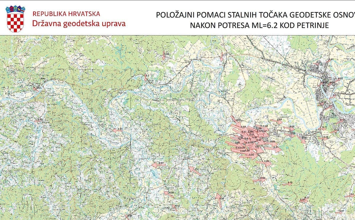 Od 4. do 28. siječnja 2021. godine na potresom pogođenom području, službenici Državne geodetske uprave obavili su pripremne radnje i precizna kontrolna satelitska (GNSS) mjerenja na području gradova Gline, Petrinje i Siska, te je temeljem toga izrađeno Izvješće o analizi rezultata preciznih geodetskih mjerenja o pomicanju zemljine kore na potresom pogođenom području, kao i pregledne karte položajnih i visinskih pomaka.