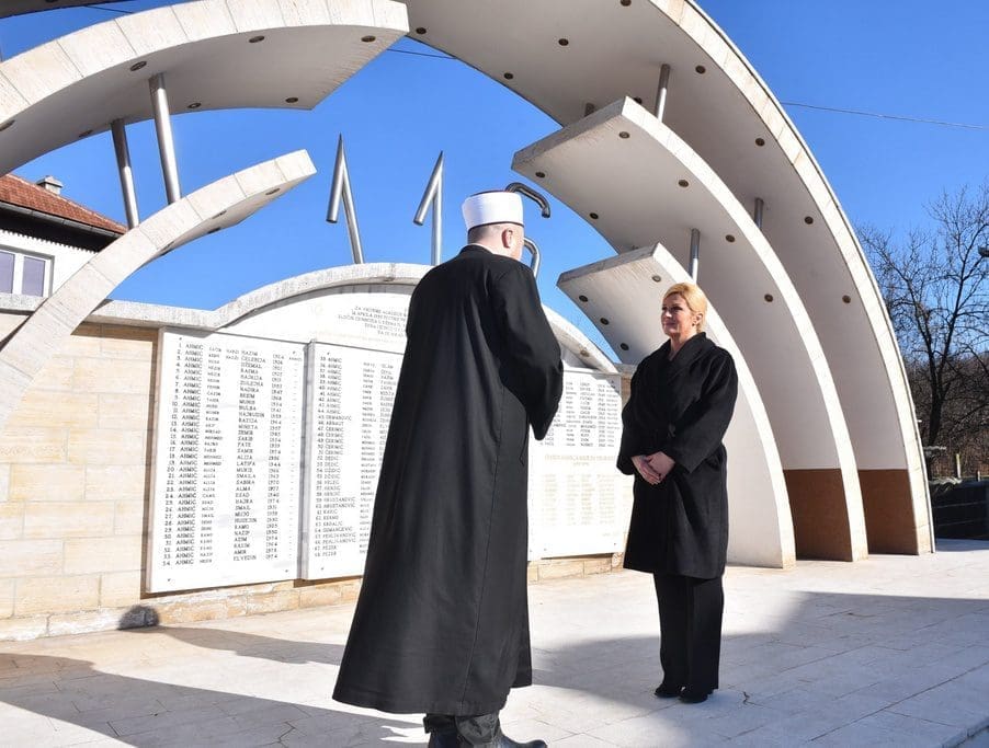 Hrvatska predsjednica Kolinda Grabar-Kitarović nenajavljeno je posjetila Ahmiće i Križančevo Selo u srednjoj Bosni kako bi odala počast bošnjačkim i hrvatskim žrtvama sukoba tijekom proteklog rata u BiH.