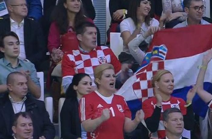 Kao i na prethodnim utakmicama na koje je išla, predsjednica je i na ovoj utakmici bila vrlo aktivna - ne sjedi kao drugi navijači, na nogama je, viče, skače, navija iz petnih žila, a na nekim fotografijama izgleda i prilično iznervirano...