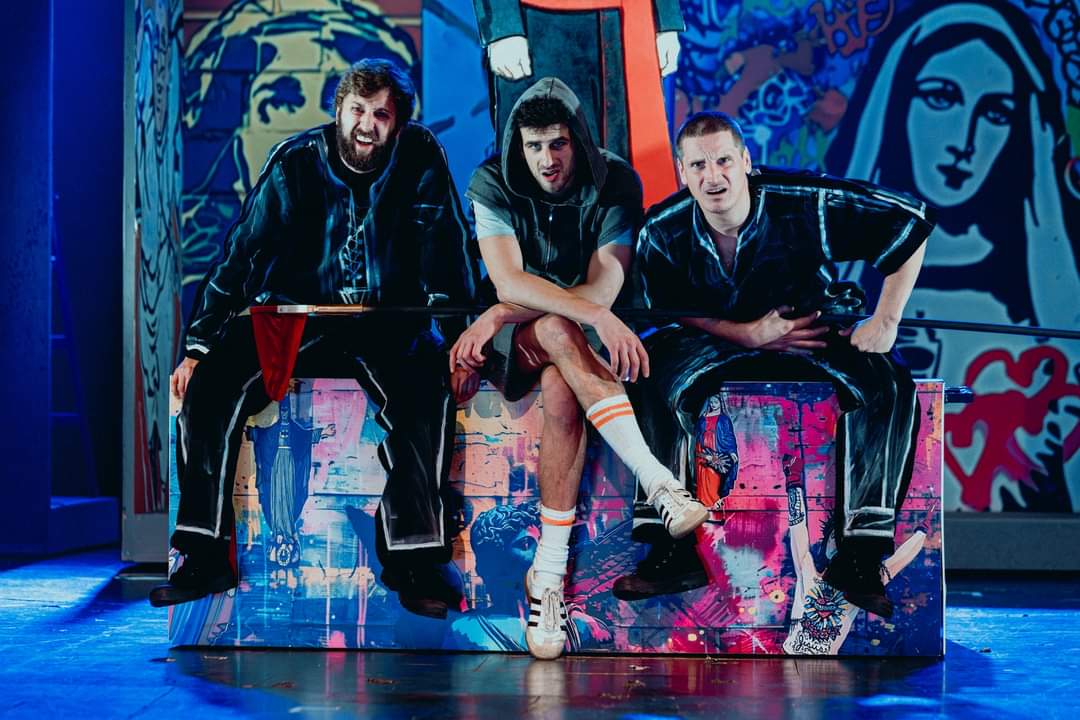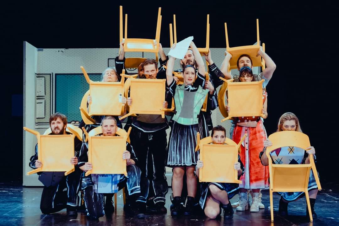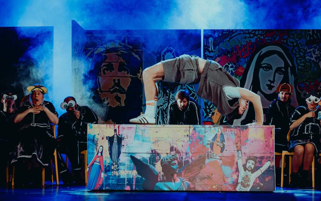 „…oko kojih cijenjeno građanstvo starije dobi hoda oprezno kao po jajima.“ Evo, ima očito i neprogresivnih mladih koji hodaju oprezno kao po jajima, lišenih rafiniranog humora koji se gradi na beskrajnoj simplifikaciji, polemičnosti u kojoj protivnik ne može odgovoriti i izvedbenim rješenjima kakva su već stoput viđena. Robi K. za čiji je penisić na početku predstave vezan bijeli balon, devetogodišnjak koji će uoči desetog rođendana izbušiti balone da ne bi odrastao, toliko je inovativan da se pola reda prisjetilo 2022. i Cardosova „Labuđeg jezera“ gdje je Aaron Kok na pozornicu uletio s bijelim balonom. Dobro, jasno, Mladenović to ne može i ne mora znati. Domaći kazalištarci i naručitelji redatelja bi mogli i morali. Scena s monologom učiteljice Smilje i njezinim „Za dom“ (pa razred viče „Spremni“) opet je ista kao i kod kerempuhovaca, neki su od nas slobodno mogli i statirati da se HNK ne muči s potragom za statistima tjedan dana prije izvedbe, a ukazanje Gospe od drvarnice nije ni za usporedbu s monologom Majke Božje u „Tako nam Bog pomogao“. Ako ćemo i pretpostaviti da satira kreće iz istoga polja uređivača Ferala, cijenjenih novinara i pisaca, ipak valja primijetiti da je redateljev potpis taj koji predstavu čini duhovitom društvenom kritikom ili salonskoljevičarskom pljuvačinom.