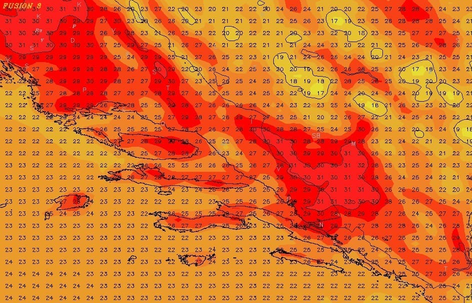 Subota će biti djelomično sunčana i suha. Noću tiho ili burin, danju će puhati slab jugozapadnjak. Minimalne jutarnje temperature zraka u Zagori od 9 do 14°C, uz obalu i na otocima od 14 do 19°C. Najviše dnevne temperature zraka od 24 do 31°C.