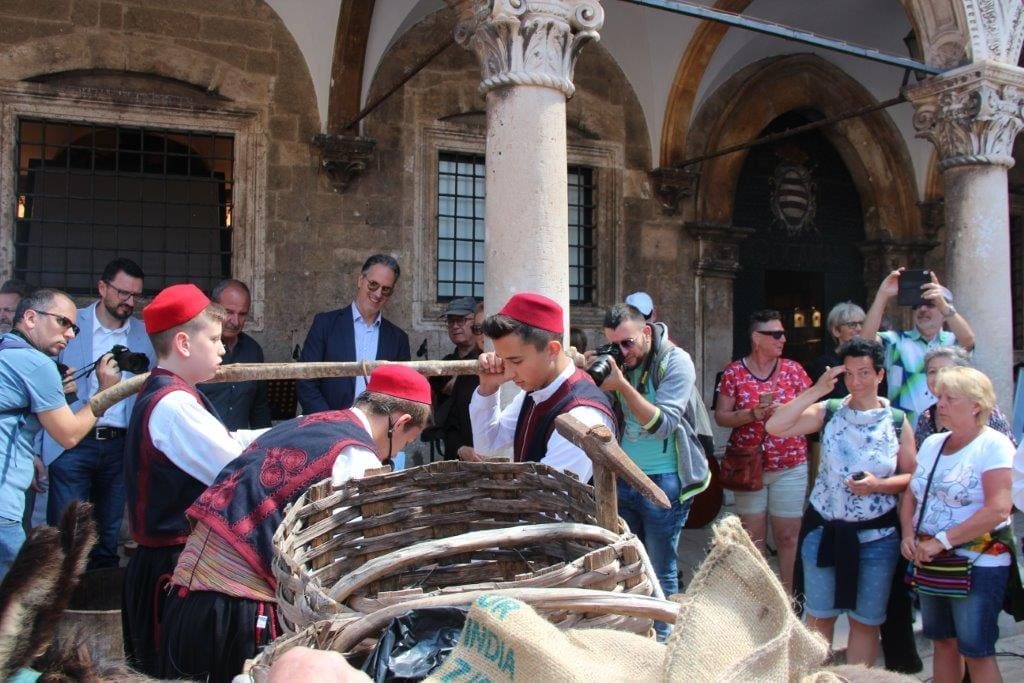 U okviru manifestacije "Proljeće u Konavlima" udruga Agroturizam Konavle jučer je organizirala atraktivno predstavljanje konavoskih vina i tradicije pod nazivom "Konavoske ledenice i vino". Konavljani obučeni kao nekad, u svoju narodnu nošnju, su s tovarom, ledom i vinom došli u Grad predat "gradskom činovniku" vrijedne proizvode. U tu svrhu se u predvorju palače Sponza postavio i simbolični štand gdje su se nakon performansa prezentirala konavoska vina što je izazvalo veliki interes domaćeg stanovništva ali i mnogobrojnih gostiju.