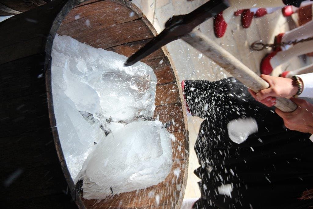Naime, u vrijeme Dubrovačke Republike usred najvećih ljetnih vrućina, na stolove dubrovačke vlastele iz dubine konavoske Sniježnice, svakodnevno je dolazio led. Bio je to samo jedan od prestižnih proizvoda koji su Gradu i Republici priuštile čarobne Konavle, kraj iznimne ljepote i prirodnog bogatstva. Danas se u Konavlima proizvode izvrsna vina, a vrh vinske ponude predstavljaju malvazije konavoskih proizvođača. Stoga su, Konavljani u Grad ponovno donijeli led, a s njim i konavoska vina, da bi još jednom pokazali bogatstvo Konavala te počastili Dubrovčane i goste onako kako je i knez dubrovački častio svoje najvažnije goste.