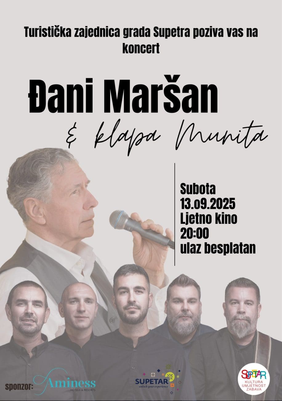 U subotu, 13. rujna 2025., ljubitelje dalmatinske pisme očekuje poseban glazbeni doživljaj u supetarskom ljetnom kinu – koncert proslavljenog kantautora Đanija Maršana i zadarske klape Munita. Ova večer donosi spoj tradicije i suvremenog glazbenog izričaja, uz repertoar koji će podsjetiti na bezvremenske hitove zadarskog slavuja Đanija Maršana, ali i predstaviti bogatstvo klapske pjesme.