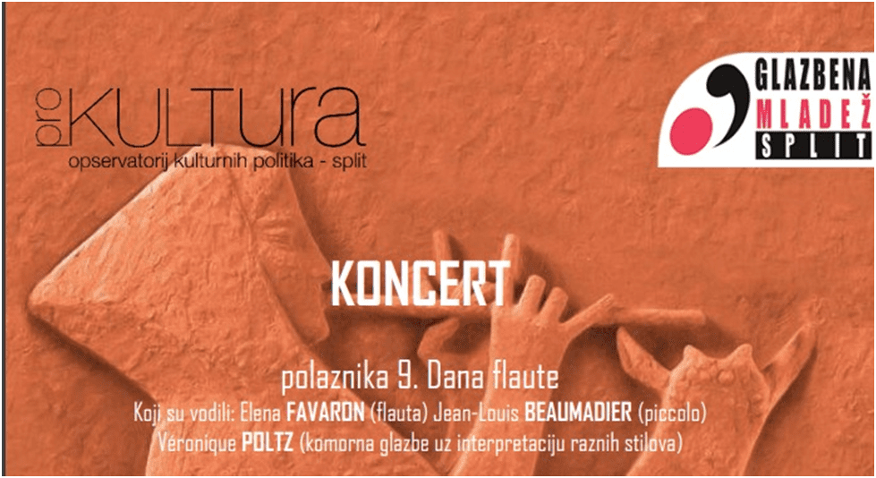 Koncert polaznika 9. Dana flaute u organizaciji Glazbene mladeži Split, Umjetničke akademije u Splitu i Umjetničke organizacije Aleph održat će se u nedjelju, 24. travnja 2022. godine u 17 sati u Kući jezika i kulture na Peristilu.