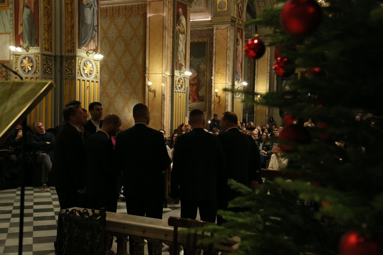 Koncert je uslijedio nakon svečane svete mise koju je predvodio vlč. Fabijan Štedul, svećenik Vrhbosanske nadbiskupije i član Zavoda sv. Jeronima. Liturgijsko pjevanje tijekom mise animirala je Klapa Praska, dok je uoči samog koncerta okupljene pozdravio rektor crkve i Zavoda sv. Jeronima Marko Đurin, istaknuvši važnost ovakvih susreta kulture, vjere i nacionalnog identiteta.