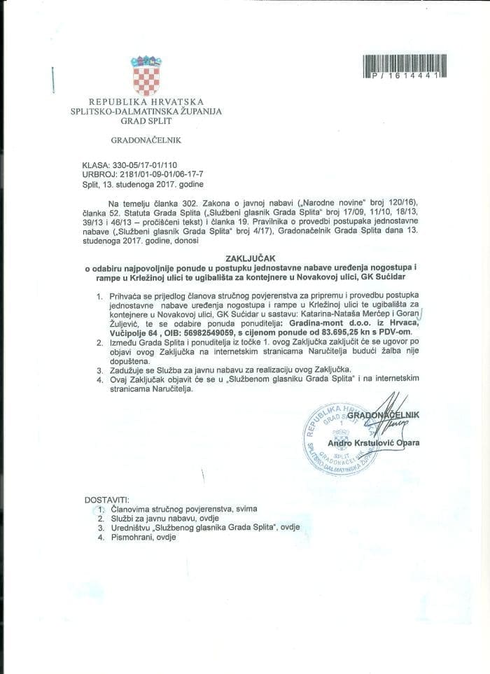 - Nogostup nije prekinut na sredini ulice nego na početku ulice. Zid koji je sprječavao navodnu šetnju građana kratkim dijelom nogostupa bio je i prije. Građani sad neometana mogu koristiti nogostup, ali ne zadugo. Pravljenjem od ove ulice slučaj, možete otvoriti "Pandorinu kutiju". Naime, duž cijelog nogostupa imamo parkirane automobile. Želi li tko da u nedostatku parkinga na Sućidru stavimo po pravilu tu stupiće? Kakva bi tek onda pobuna nastala. Ako je netko hrabar neka to zatraži javno, ako već i proziva za dva metra nogostupa na početku ulice – zaključuje Roda na temu Novakove.