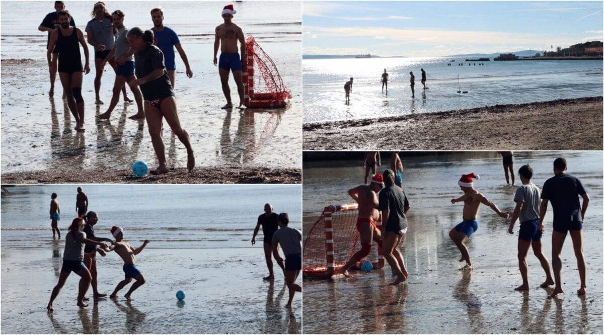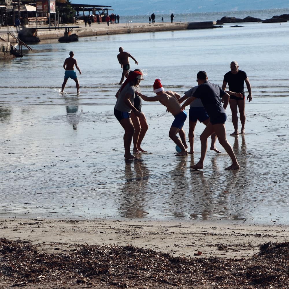 Sunčan, ali prohladan Božić najhrabriji Splićani proveli su na plaži Bačvice. Picigin i mali balun, a sve to uz temperaturu mora od samo 15 Celzijevih stupnjeva.