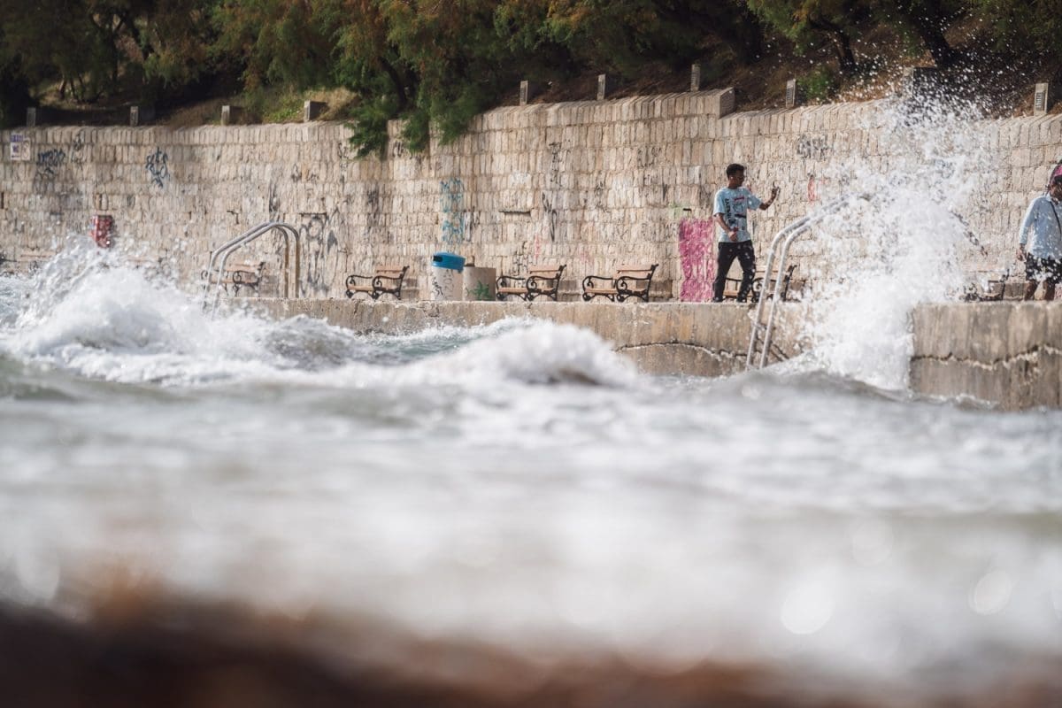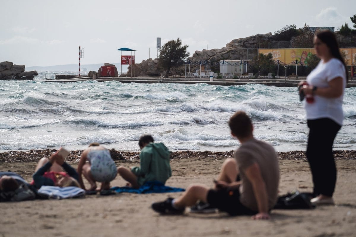 Temperature mora su visoke za dio godine, uglavnom oko 22°C. Bez obzira na jugo i valove, kupača i dalje ima, a nadolazeća promjena vremena nije spriječila Splićane da i danas posjete svoju omiljenu plažu. Picigin, kupanje ili samo izležavanje na plaži, bile su neke od današnjih "aktivnosti".
