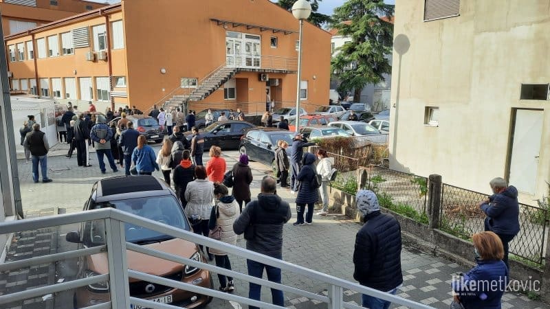 Jutros oko 7 sati na punktu za testiranje na COVID-19 kod Doma zdravlja u Metković je gužva kakva do sada nije zabilježena.