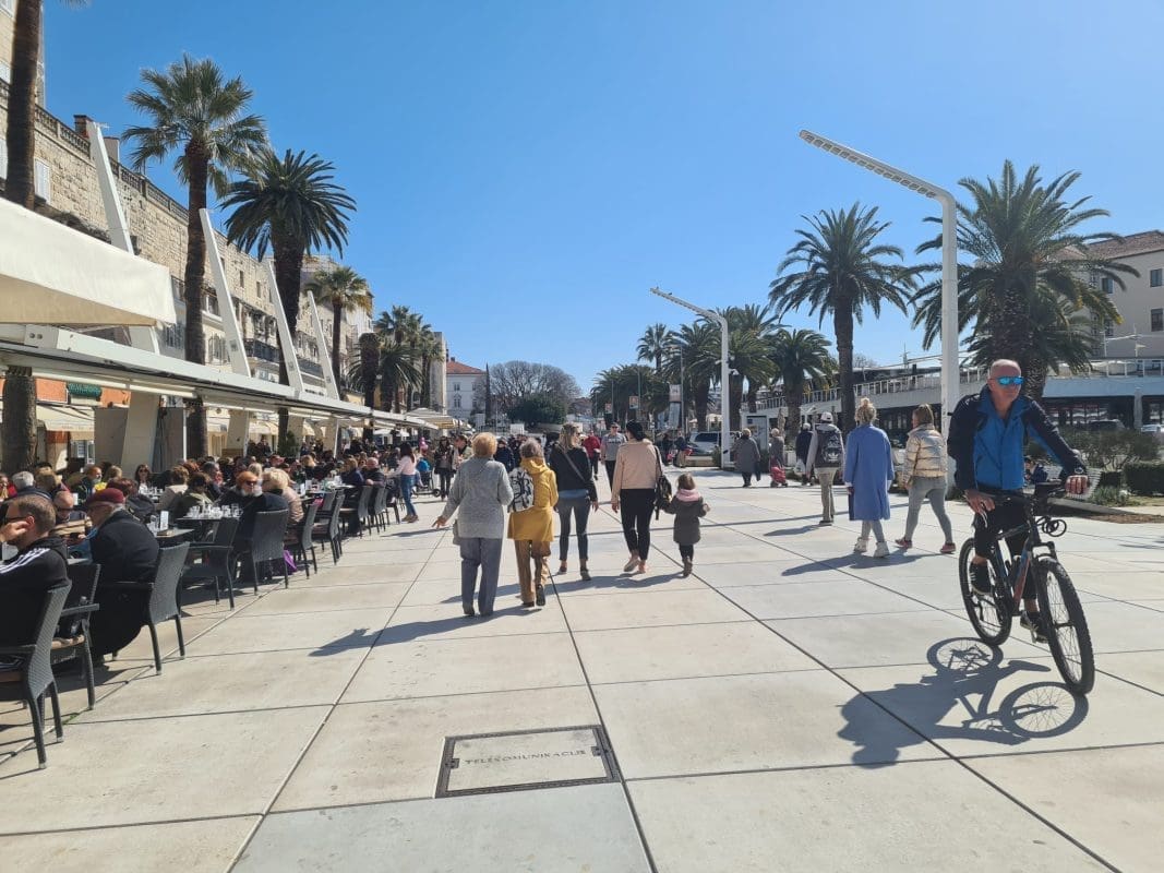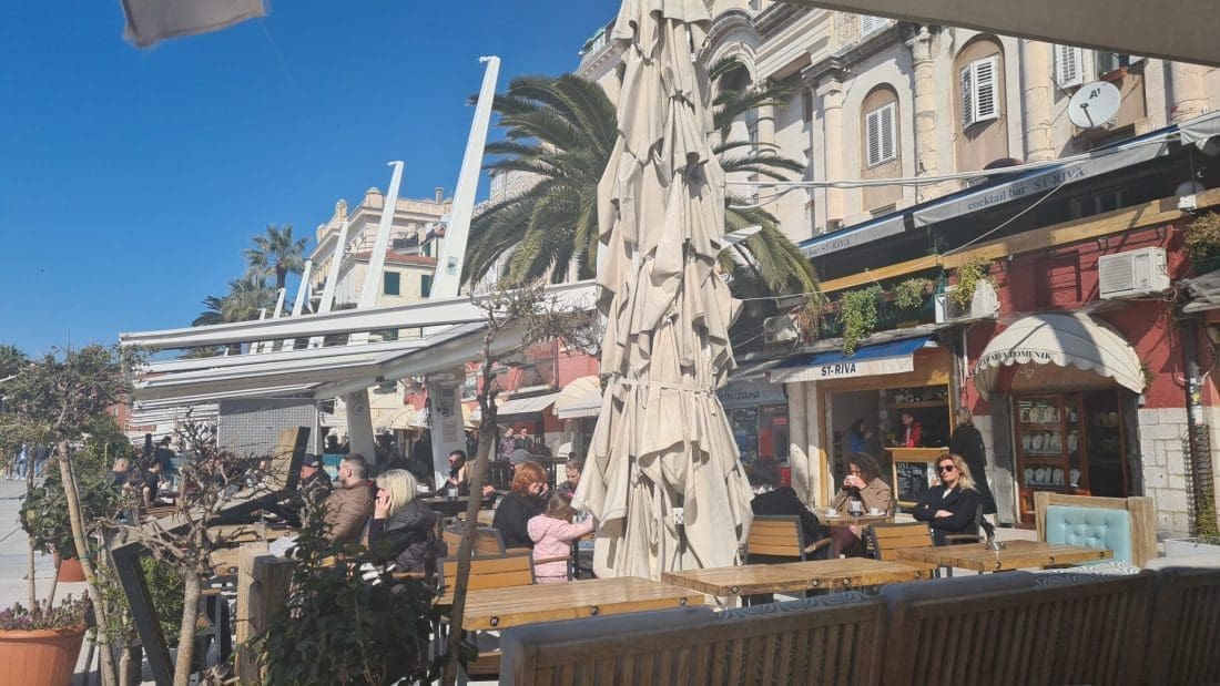 Kafići su bili krcati, a Splićani su vrebali oko stolova ne bi li uhvatili svoje mjesto pod suncem.