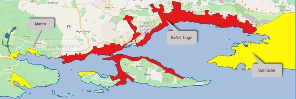 Projekt aglomeracije Kaštela-Trogir obuhvaća područje gradova Kaštela i Trogira, poluotoka Čiovo, općina Seget i Okrug te naselja Slatine.