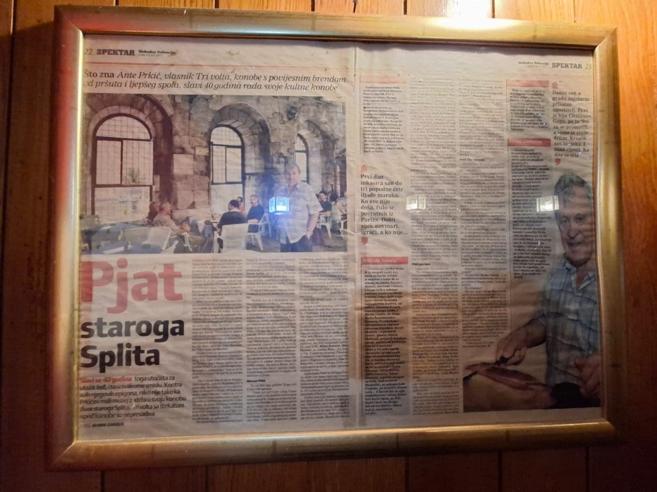 - Bilo ih je puno, ali recimo Ante Prkić koji je osnovao ovo mjesto, on je pokojni vlasnik... Ja sam guštao svakih mjesec dana slušati njegove priče. Pričao je kako je pokrenuo ovo mjesto, kako je napravio uspjeh u inozemstvu... Svaki put kad bi ponovio priču, bila bi za nijansu bogatija. I bilo je fenomenalnog pršuta! Bile su tu tripice koje odlaze u Rijeku iz "3 Volta". I najbolje osoblje – Maja i Mare koje su i danas tu, i pokojna Tonka. Ja sam radio svojevremeno kao dnevni novinar i onda smo mi čekali Tonkin poziv u srijedu. Kolega Tonči Kesić s Radio Dalmacije i ja, mi bi prevarili svoje poslodavce i ovdje bi došli na taj fažol sa suvim mesom iz Dalmatinske Zagore. To se nigdje nije moglo kušati osim ovdje. I pečenica subotom, to je bilo za gurmane, nisi to mogao nabaviti ako nemaš rodbinu na selu.