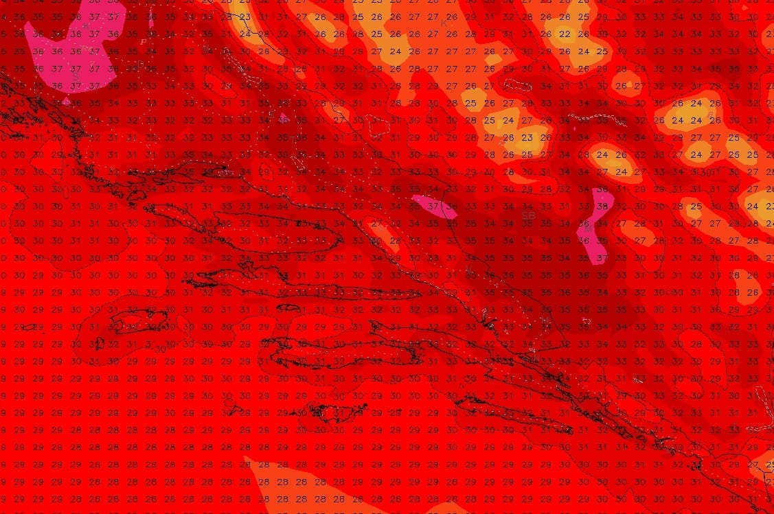 Vruće, vrlo vruće i djelomično sunčano bit će u ponedjeljak u kojem se popodne tek ponegdje, uglavnom u zaobalju, može dogoditi kratak i slabo izražen pljusak s grmljavinom.