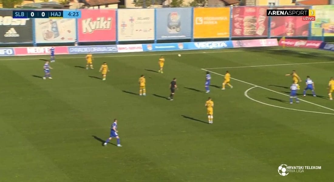35' utakmice - Slaven se napokon nešto napravio i došao je do polovice Hajduka. Sada oni imaju korner i pokušavaju iz prekida zaprijetiti vratima Lovre Kalinića.
