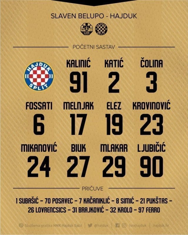 Nogometaši Hajduka danas su od 17 sati igrali protiv Slaven Belupa u Koprivnici.