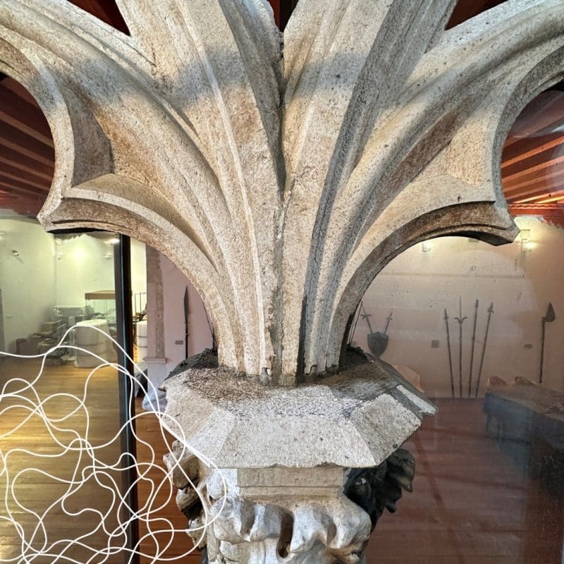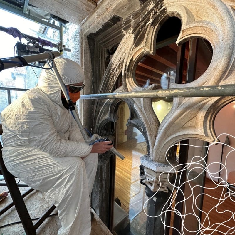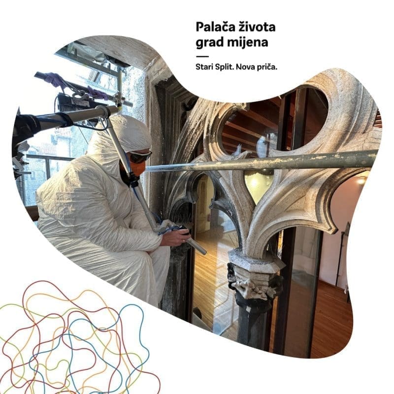"Osim što je jako rijetka, naša kvadrifora nosi grb obitelji Papalić, pa važno da se obnovi i zasja u punoj sjaju za sve buduće generacije! Radove obavlja naša restauratorica za kamen Helena Tresić Pavičić. Restauracija gotičke kvadrifore s kamenim mrežištem i anđelom štitonošom, koji nosi grb obitelji Papalić, nastavak je rada na obnovi palače i rada na novom obnovljenom postavu Muzeja.