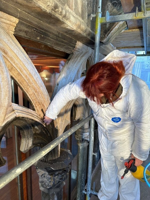 Radoi su u završnoj fazi. Veliki dio kvadrifore je očišćen, skela će tu biti još malo. Sada je u tijeku fino čišćenje kvadrifore laserom i kada se cijela očisti onda ćemo odraditi pranje fasade kako bi sve bilo ujednačeno. I na samom kraju ide montaža anđela, replika jer original ide u postav. Očekujemo da bude gotova do ljeta", rekla nam je ravnateljica Bulić.