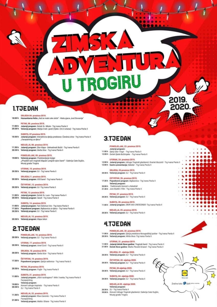Treća po redu Zimska adventura u Trogiru službeno započinje u srijedu 4. prosinca humanitarnom feštom "Kad se male ruke slože" na Maloj pjaci, a bit će to samo uvertira u niz događanja, koncerata, igraonica, izložbi, predstavljanja knjiga, gastro prezentacija i predstava koje će se u srcu trogirske gradske jezgre odvijati sve do 5. siječnja 2020.