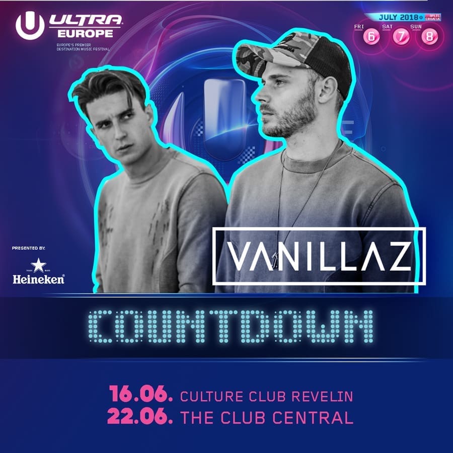 Countdown To ULTRA powered by Heineken izvođače predvodi hrvatsko-slovenski DJ dvojac Vanillaz koji je već dobro poznat na domaćoj i svjetskoj sceni. Miha Pajk i Marko Bucić iza sebe imaju niz hitova, a mogu se pohvaliti i odličnim nastupima na brojnim festivalima kao što su ULTRA Europe, Miami Music Week, Kings Day Netherlands, ADE, MTV Europe, WMC Miami, Umaginaton i ATP. Potpisali su za GPM management u Los Angelesu i za dance label Thrive/Sony. Iz njihove uspješne glazbene radionice nedavno je izašao vrući ljetni hit Remember na kojem, nakon lanjskog hita Sunshine, ponovno gostuje Haight Ashbury. Zabilježena je i suradnja s French Montanom na pjesmi Lose Control kao i obrada pjesme grupe Dire Straits Sultans of Swing. Njihovu glazbu podržali su i poznati glazbenici kao što su Tiesto, Martin Garrix i David Guetta, a bit će zabilježeni kao prvi DJ-i s naših prostora koji će nastupiti na glavnoj pozornici festivala ULTRA. Naime, dečki su danas otputovali u Koreju gdje će posljednjeg festivalskog dana glavnu pozornicu dijeliti s Davidom Guettom i Feddeom Le Grandom, a u srpnju ih očekuje nastup i na centralnoj poljudskoj pozornici.