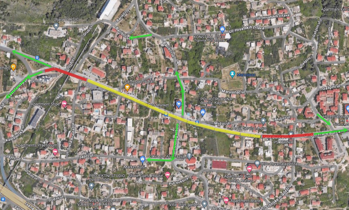 U tijeku su radovi na izgradnji vodovodne mreže u sklopu projekta "PROJEKT POBOLJŠANJA VODNO-KOMUNALNE INFRASTRUKTURE AGLOMERACIJE SPLIT SOLIN – REKONSTRUKCIJA I DOGRADNJA SUSTAVA ODVODNJE I VODOOPSKRBE GRADA SOLINA I OPĆINA PODSTRANA, KLIS I DUGOPOLJE" zbog čega će u dijelu Ulice Don Frane Bulića biti onemogućen tranzitni promet autima, autobusima i teretnim vozilima. Isključivo će biti dozvoljen promet vozilima gradilišta te iznimno stanarima, hitnim službama i javnom prijevozu. Pješački promet kroz zonu izvođenja radova će u svakom trenutku biti omogućen.