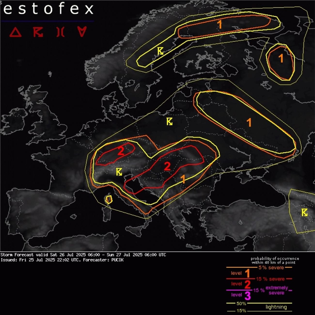 DHMZ je, unutar sustava MeteoAlarm, za veći dio zemlje izdao narančasti stupanj upozorenja. Jutros je podigao stupanj upozorenja za središnju Hrvatsku na crveni, najviši stupanj i to zbog mogućnosti obilne kiše, preko 60 mm. Za veći dio Jadrana vrijedi narančasto upozorenje.
